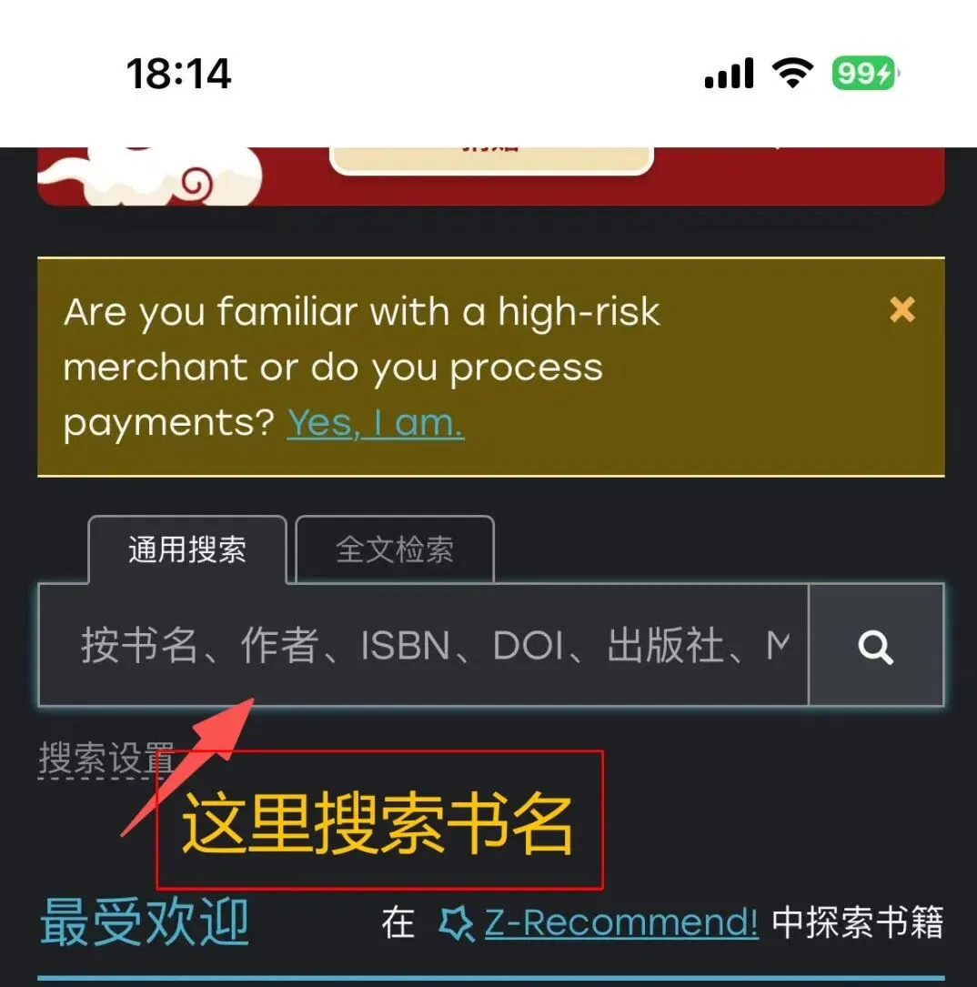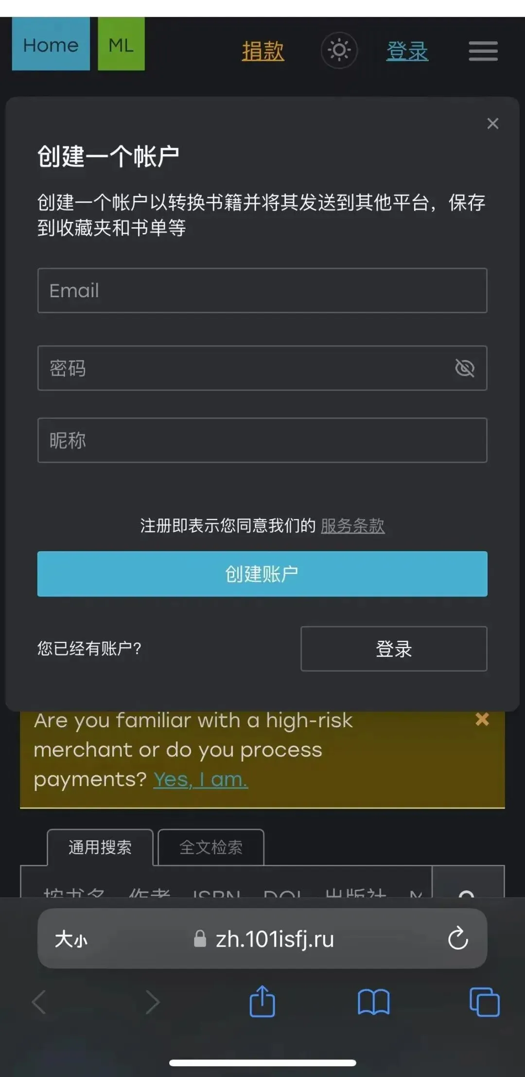 在地址栏输入https://zh.101isfj.ru/,进入zlibrary中文网站。