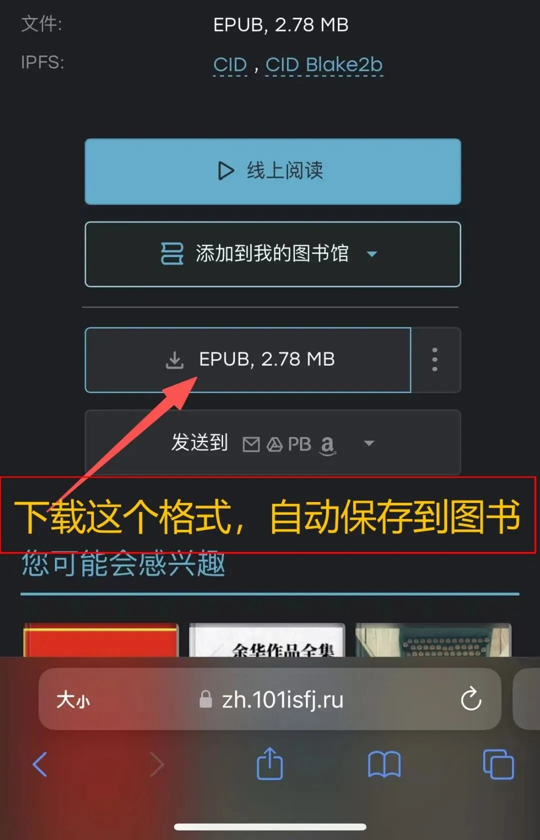 第三步:搜索书籍 在主页上搜索你喜欢的书籍,记得下载格式选择epub哦。这样下载完成后,文件会自动加载到你的“图书”App里。