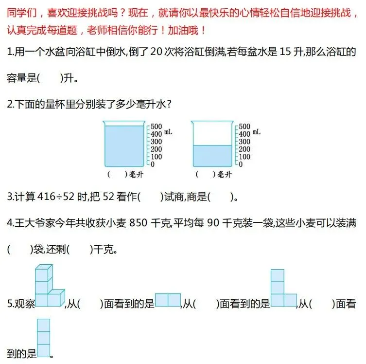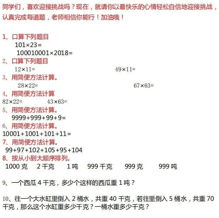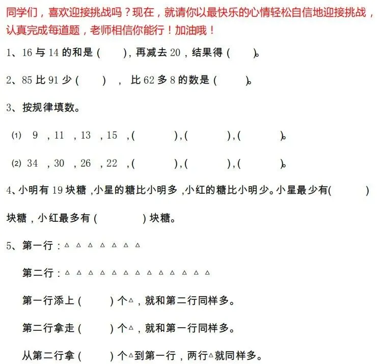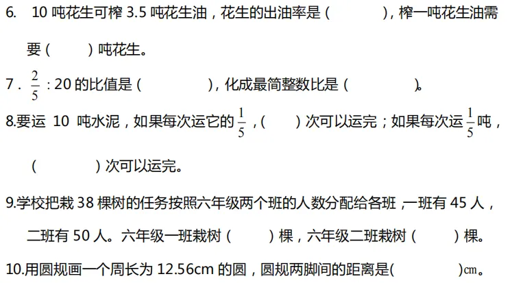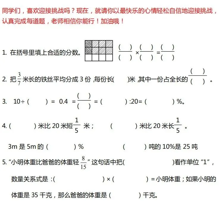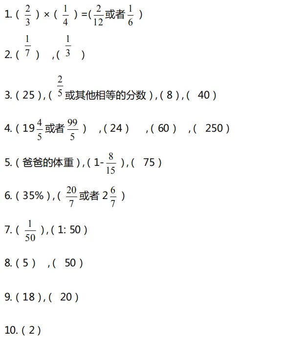 可打印丨小学1-6年级必做的70道数学题(附答案)