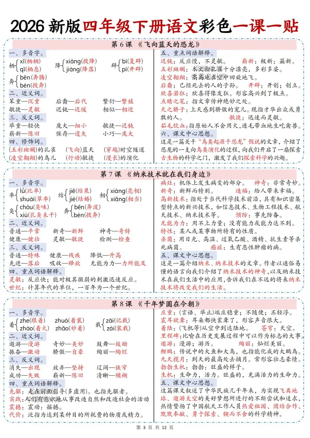 家长朋友们是否为孩子学习发愁?别担心《四年级语文下册彩色课课贴》来助力。根据册历年真题编制,题型经典,有一定难度,家长朋友们收藏打印出来让孩子做一做,及时查缺补漏。自信上考场 !