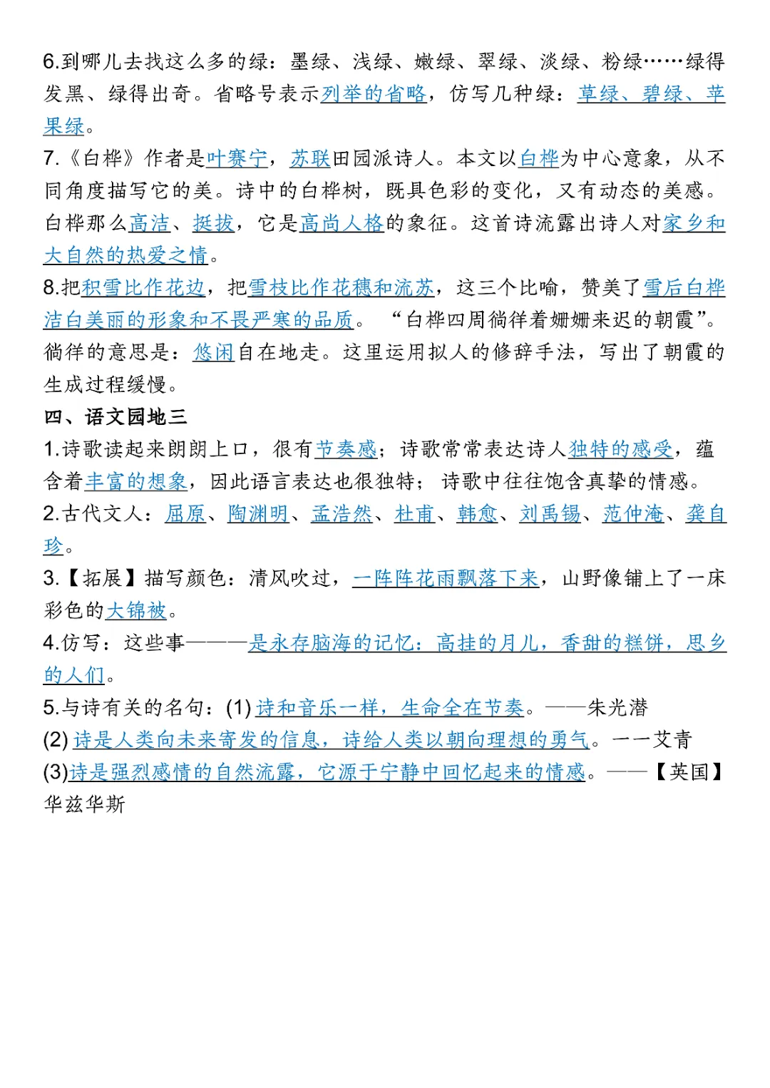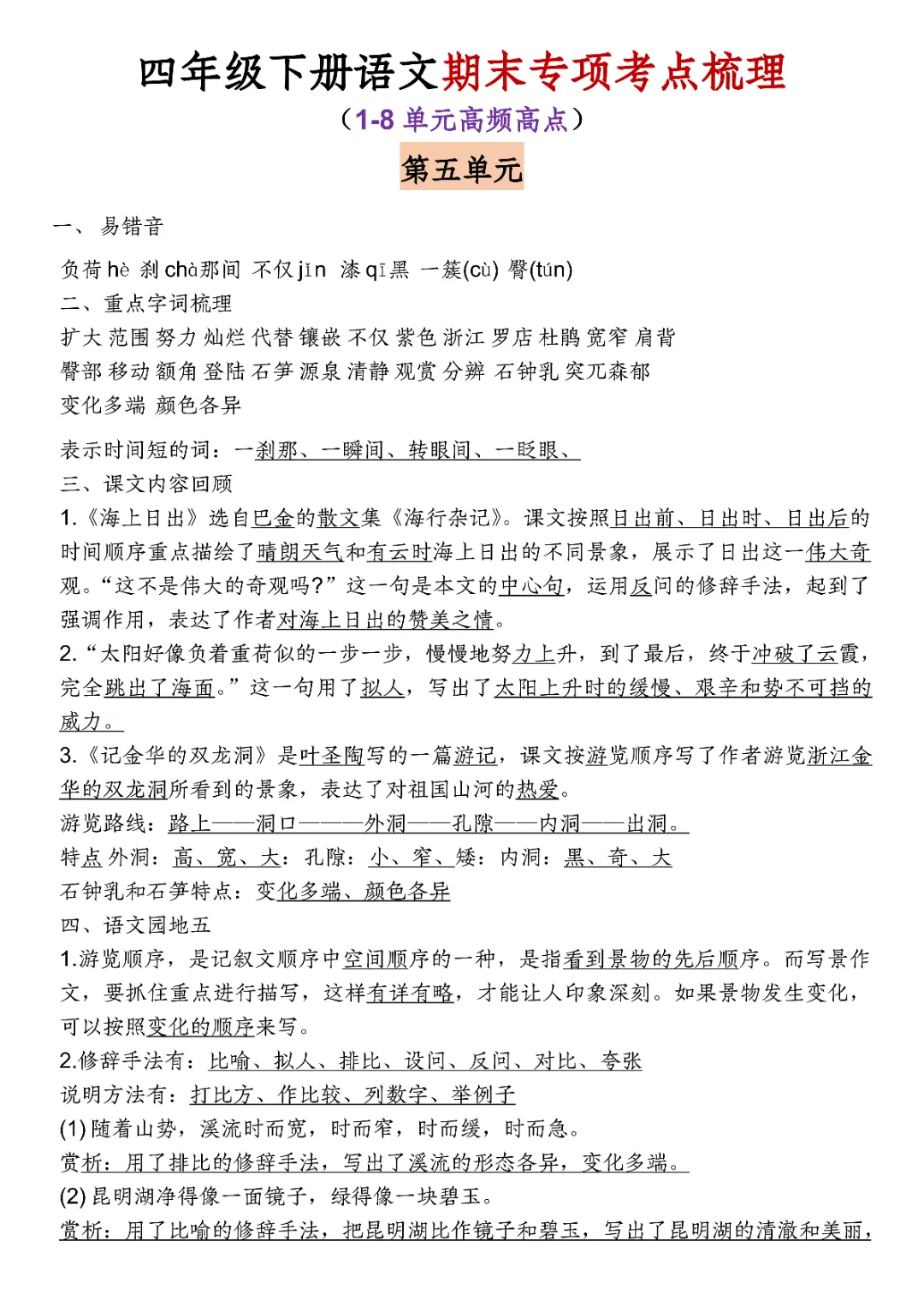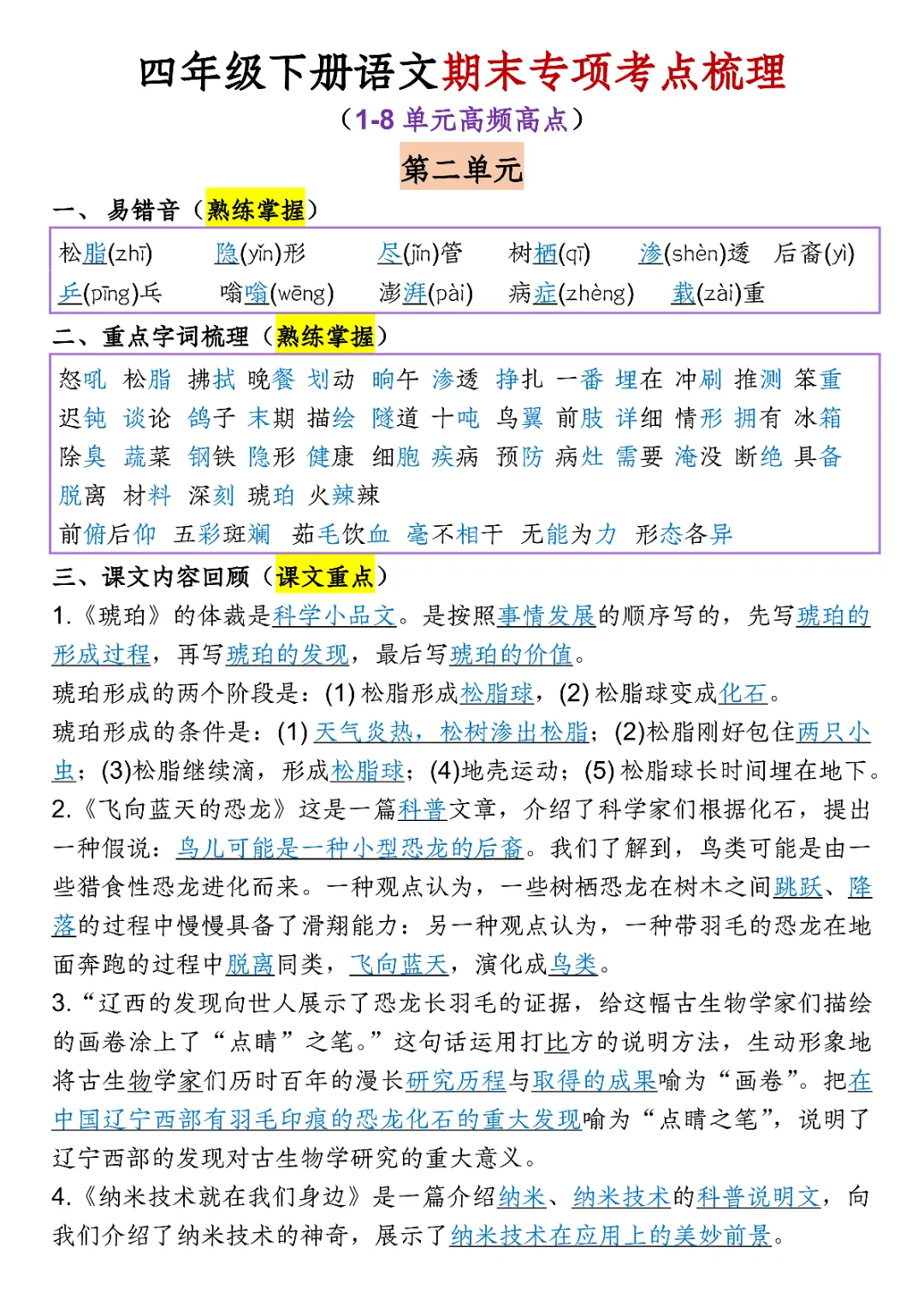 四年级下册语文1-8单元专项考点梳理(电子版可打印)