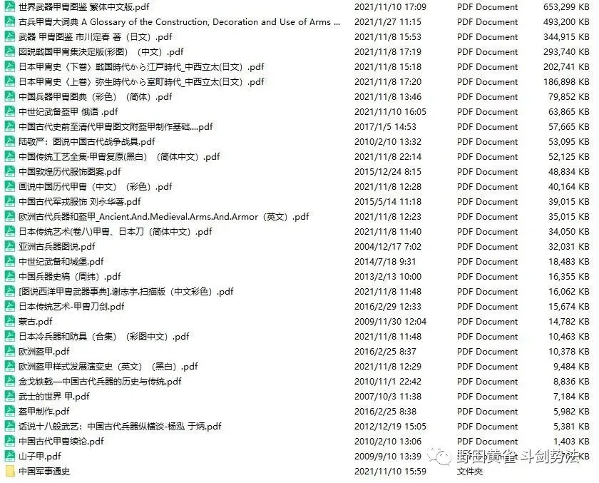 资料:中国 日本 西洋 甲胄相关电子书 30 本 + 中国军事通史 17 卷