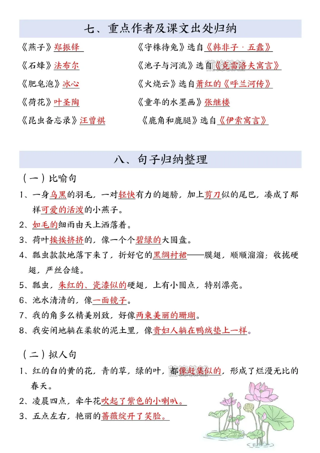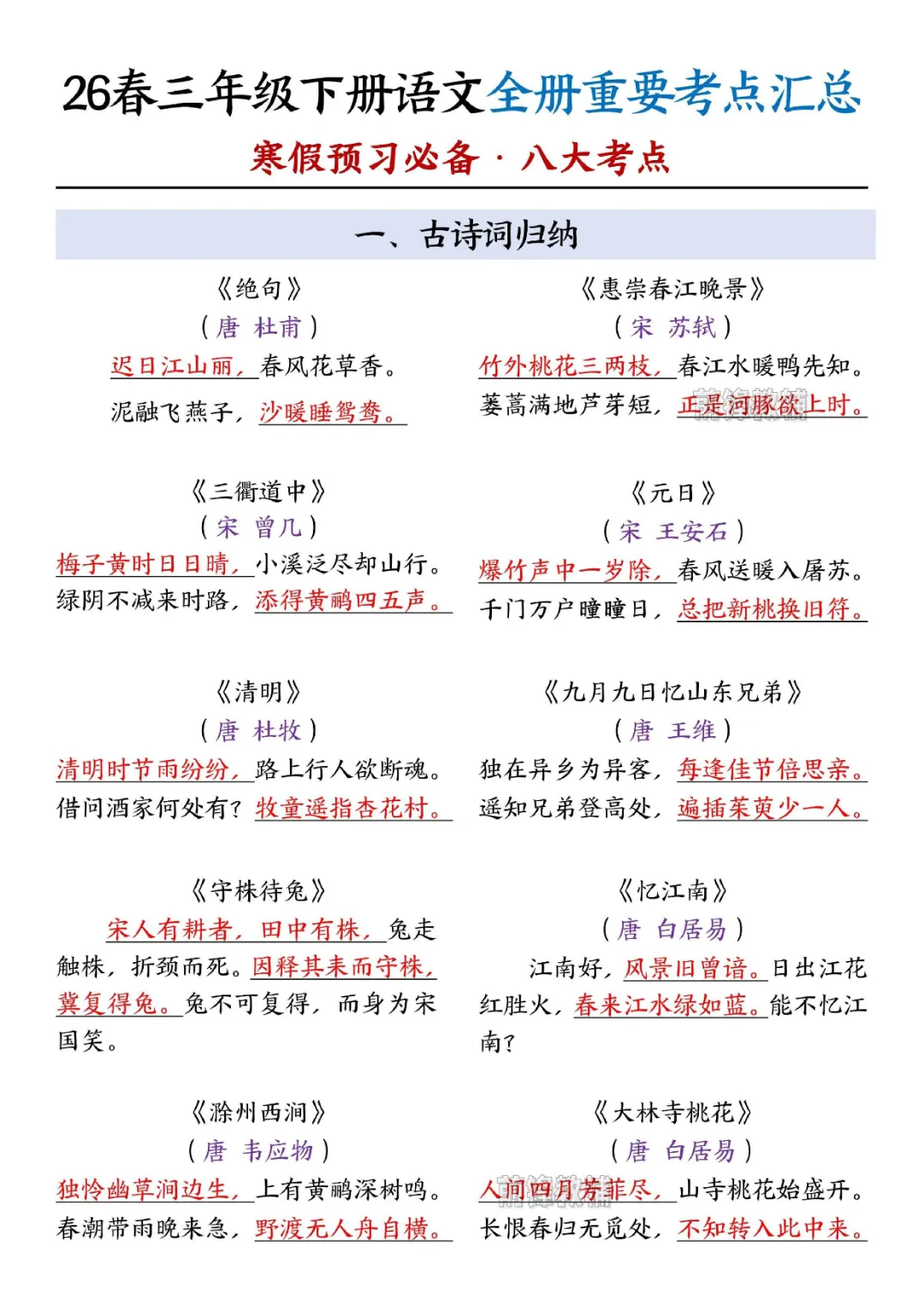 2026年三年级下册语文重要考点汇总|电子版可打印