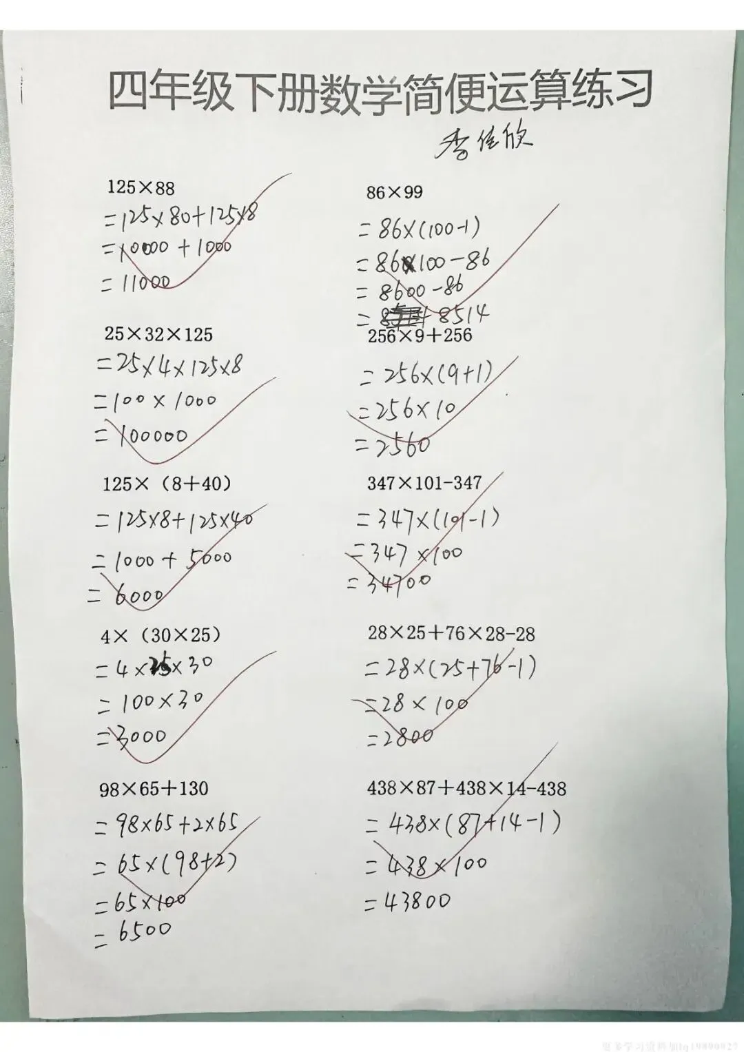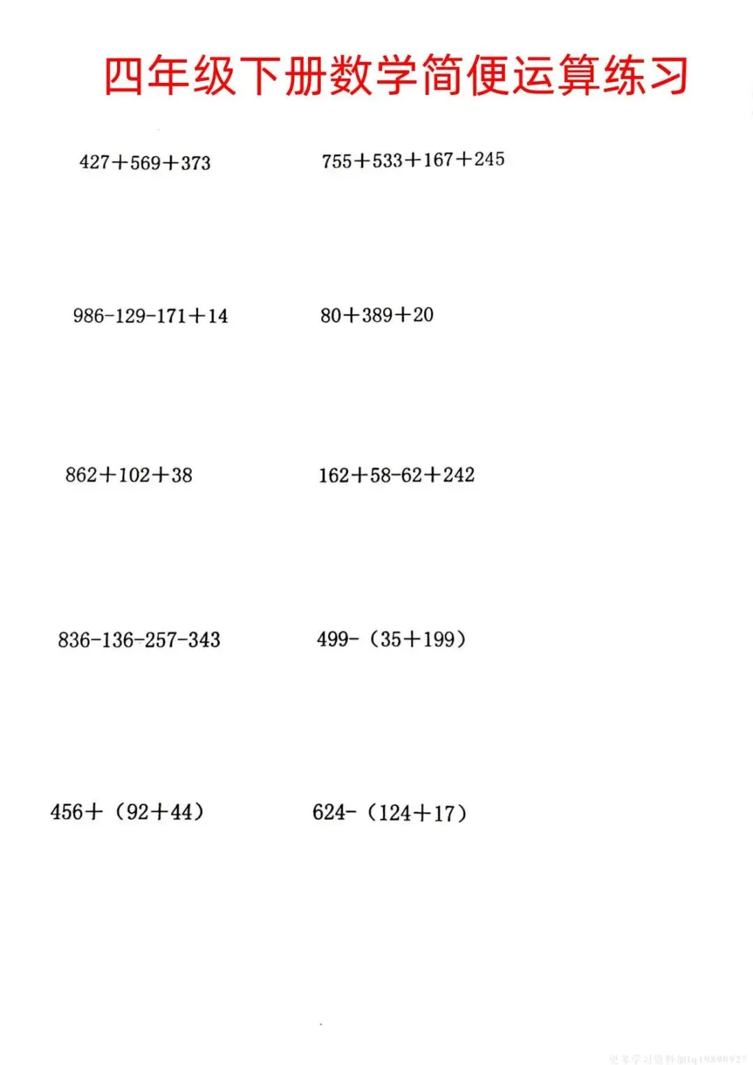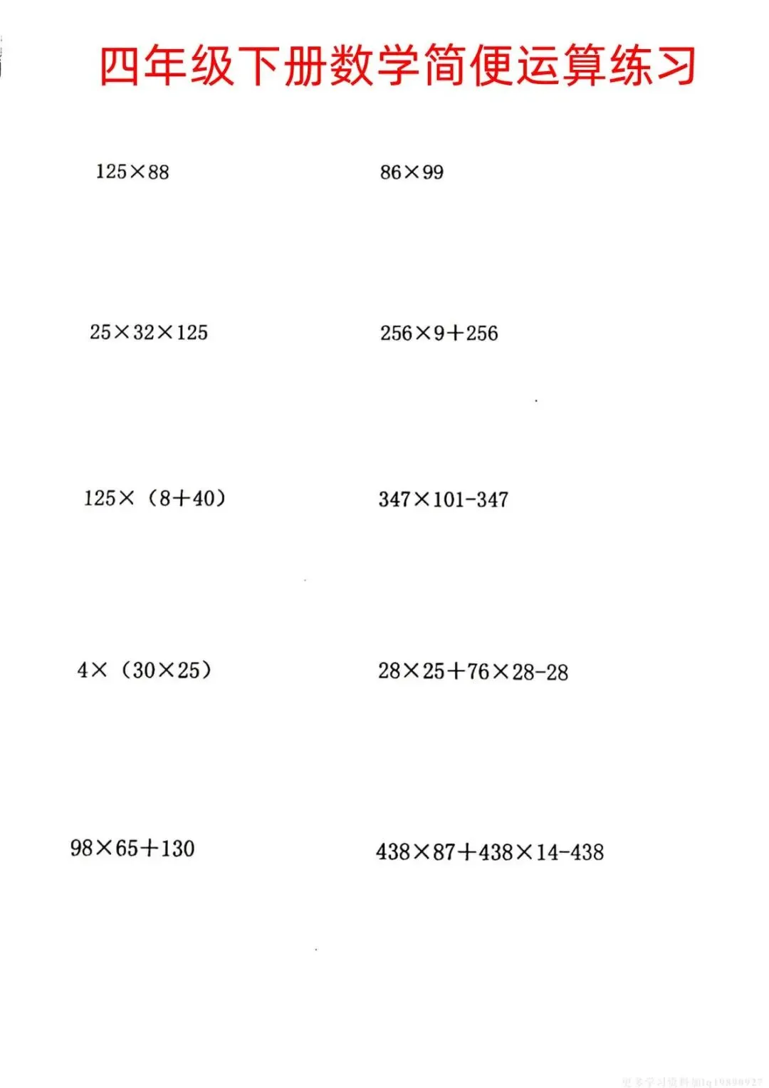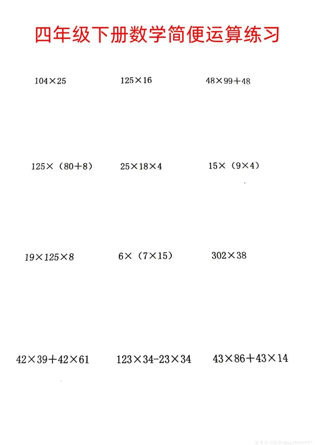 四年级下册数学《简便运算练习》附答案,电子版可打印。帮孩子夯实计算基础,提升做题速度与准确率!需要的家长抓紧领取一份给孩子打印🖨️出来,让孩子练一练吧✍🏻欢迎分享到班级群或朋友圈,方便家长打印出来助力孩子高效学习!