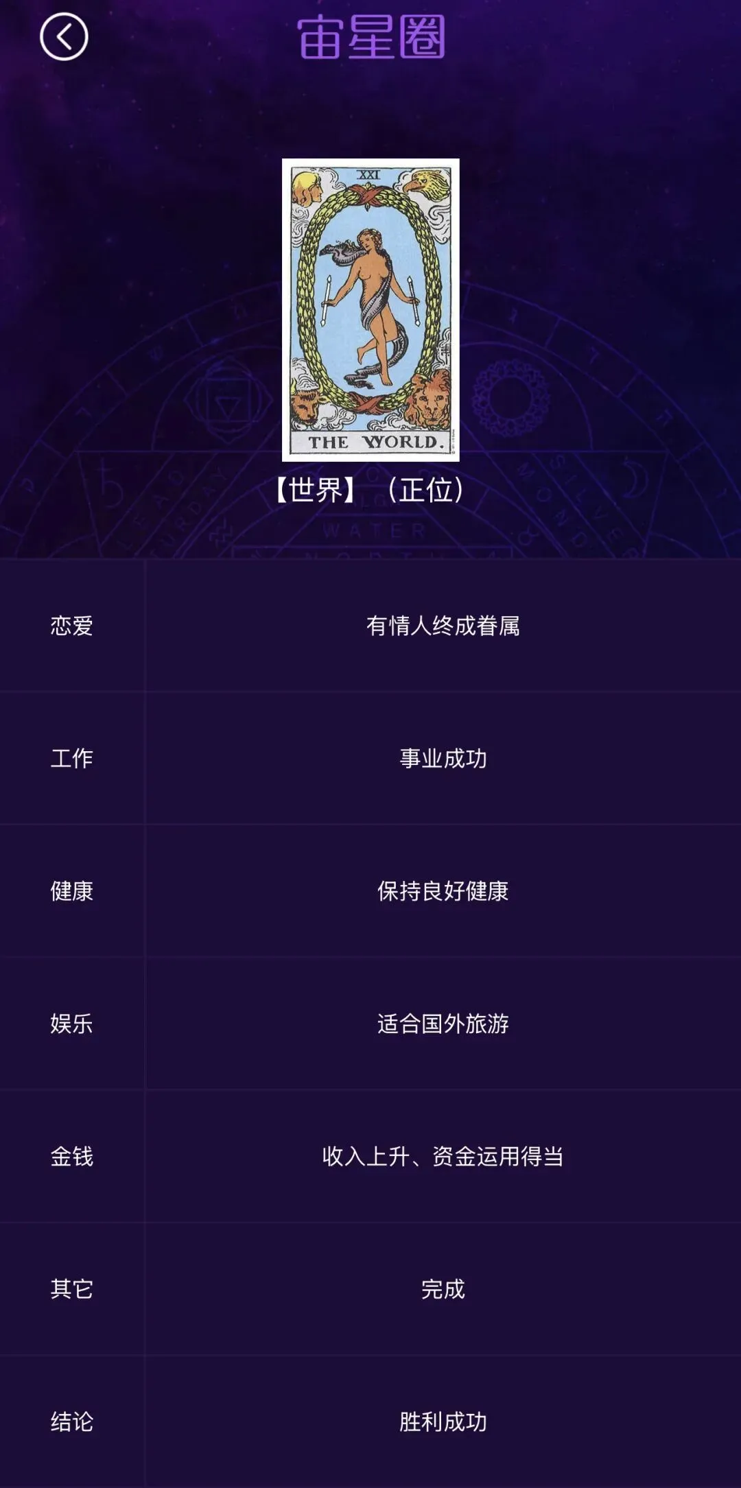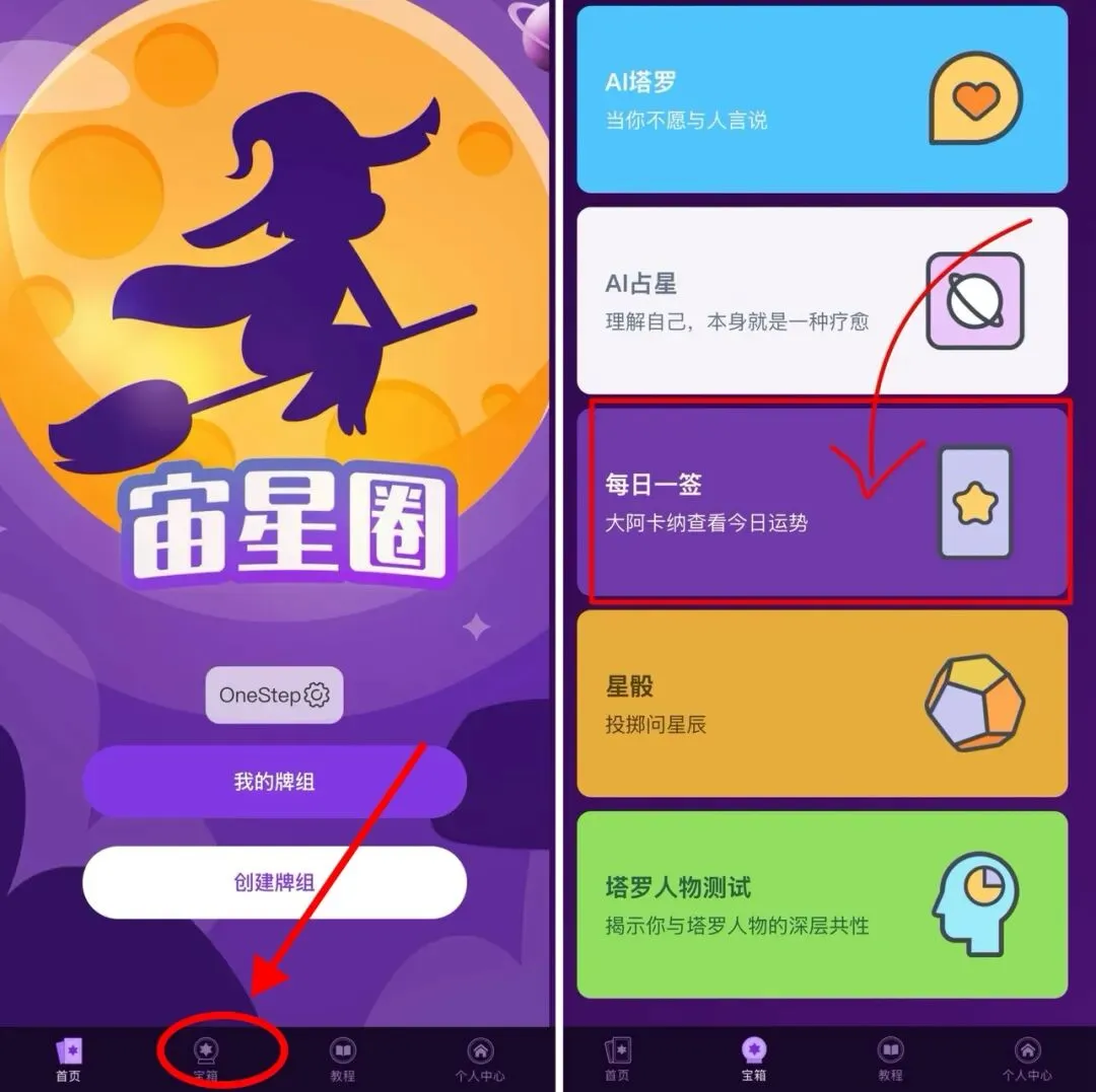 给大家推荐一个塔罗日运APP 个人实测3个月以上,发挥非常稳定,目前没有不符合的情况出现。App名称为【宙星圈】 点【宝箱】,在点【每日一签】即可。放松身心,放空思绪,再去点击占卜图案。 如图所示,会简单概述我们这一天大概情况。我邀请了几个朋友一起用,他们给我说感觉结果都挺贴合一天生活的。 除此功能,个人实测AI塔罗和AI占星是不准的,就不推荐了~以后有好用的app会再次分享给大家!