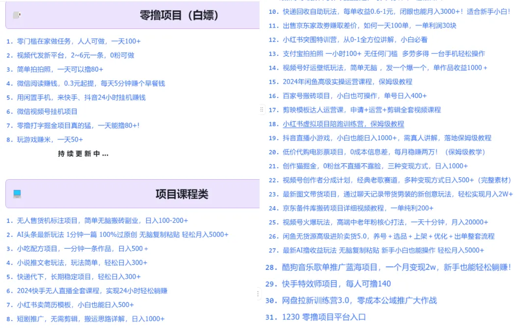 现在送你现有1600+学员实测有效的副业工具包+50个靠谱的副业项目库。