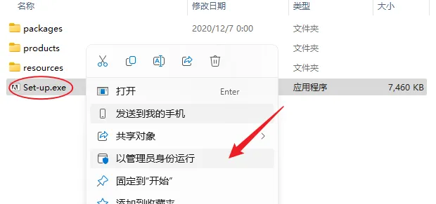 3.鼠标右击【Set-up】选择【以管理员身份运行】。