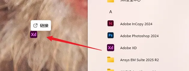 9.点击打开【开始菜单】,找到【Adobe XD】往桌面拖动创建桌面快捷方式。