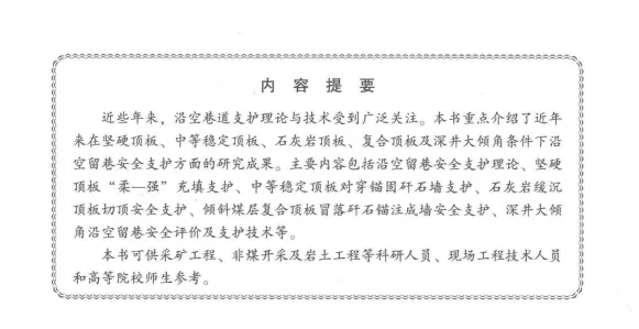 内容包括沿空留巷支护理论、技术方法、案例分析等