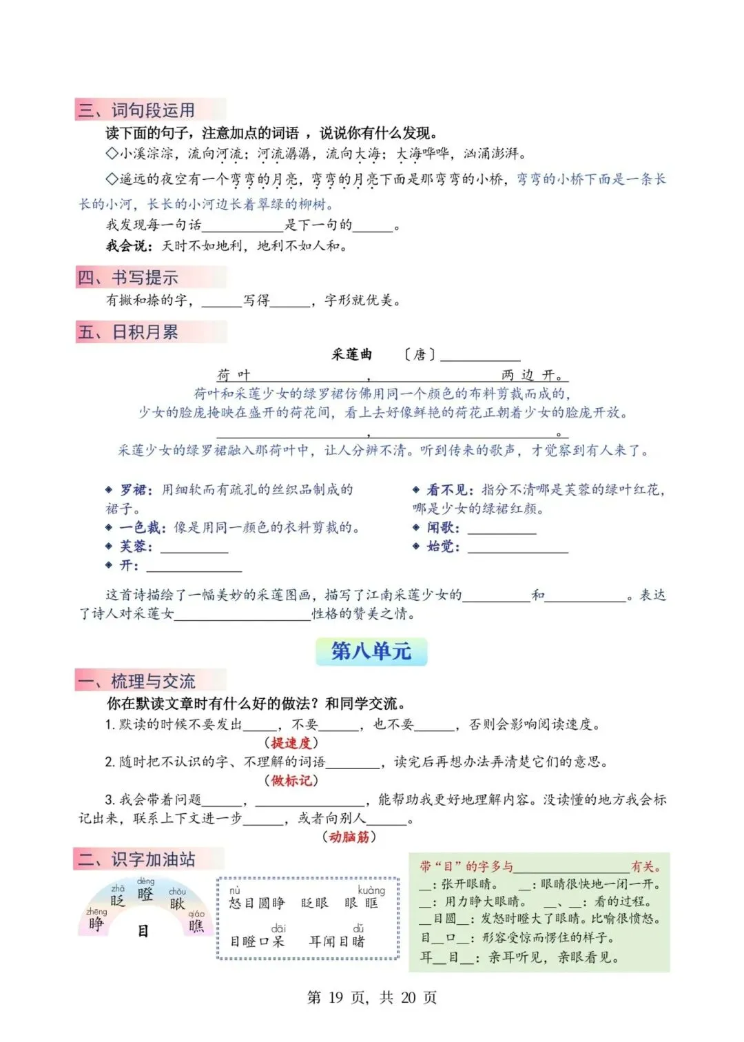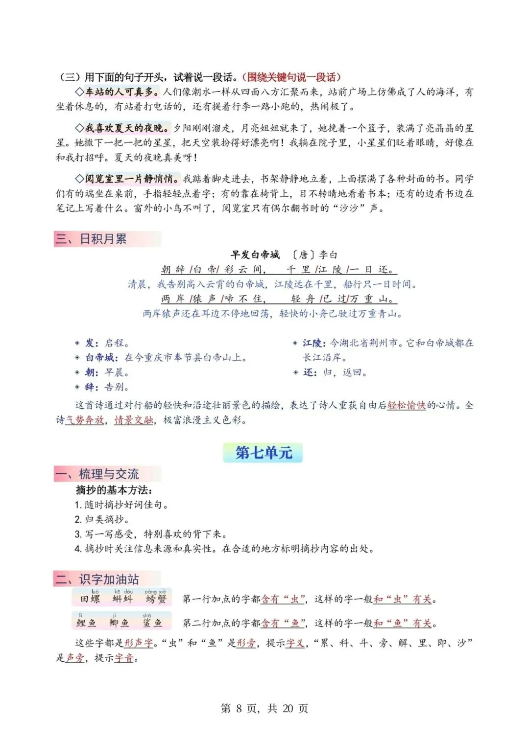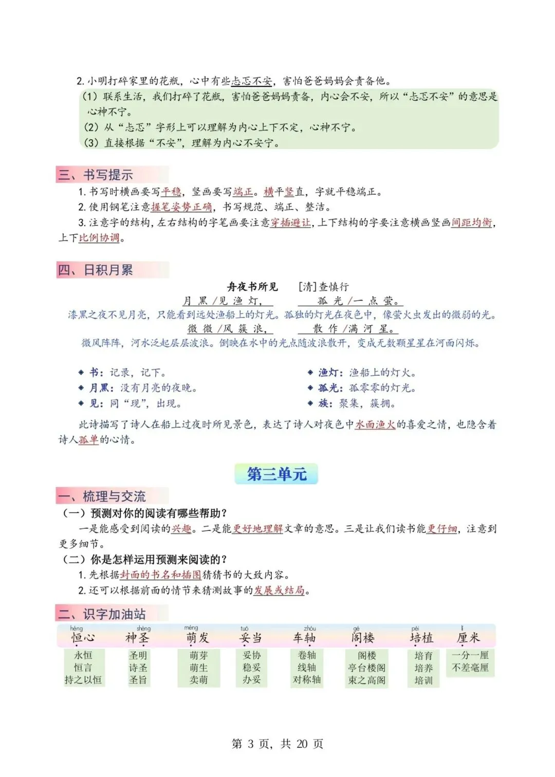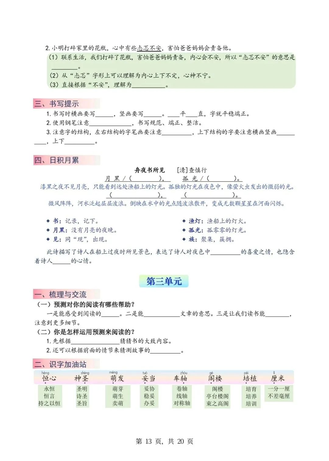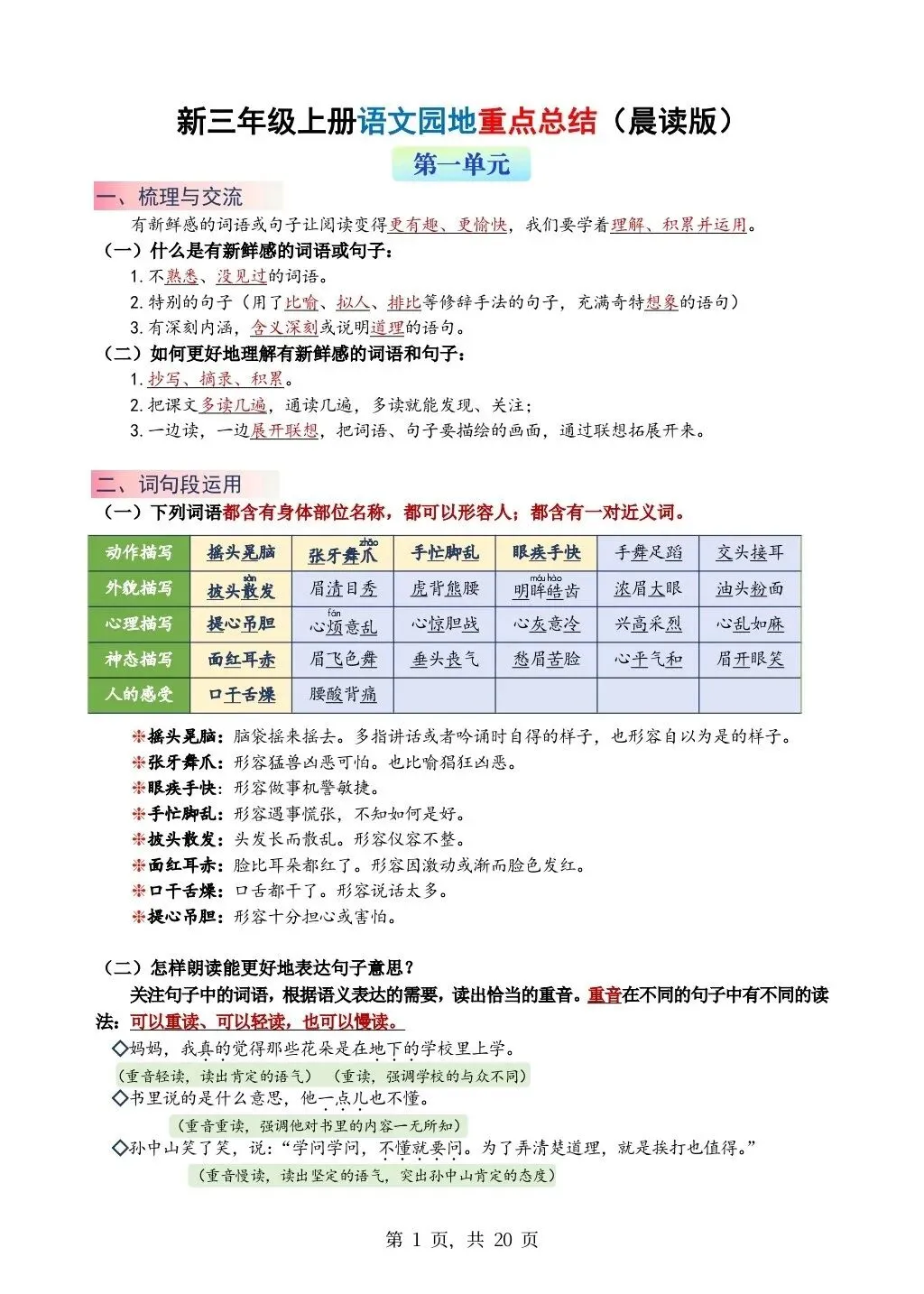 新三年级上册语文园地重点总结晨读晚练,电子版可下载打印