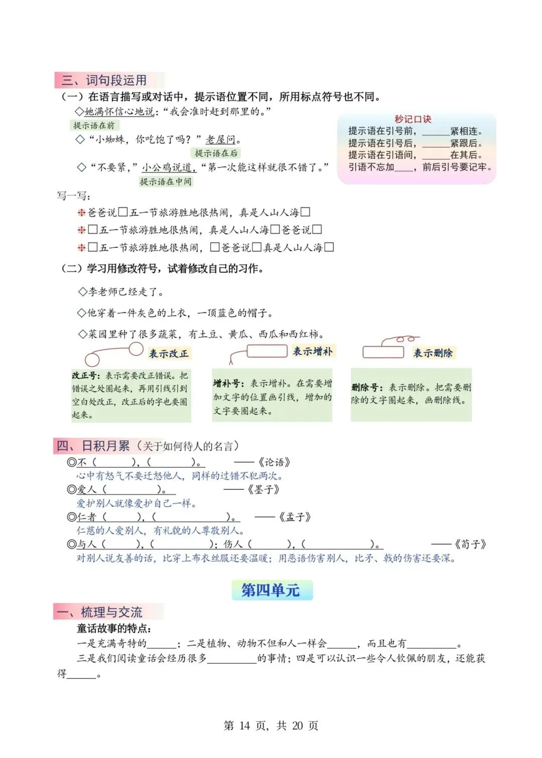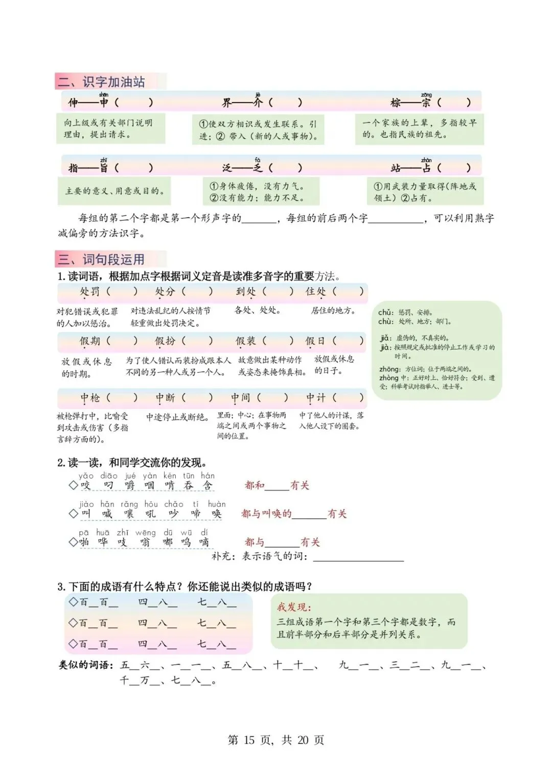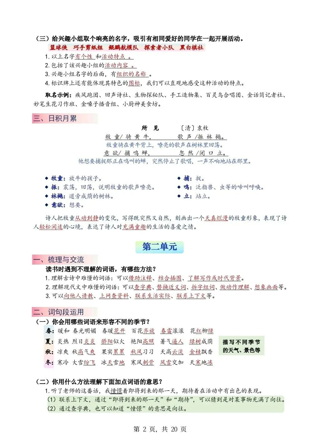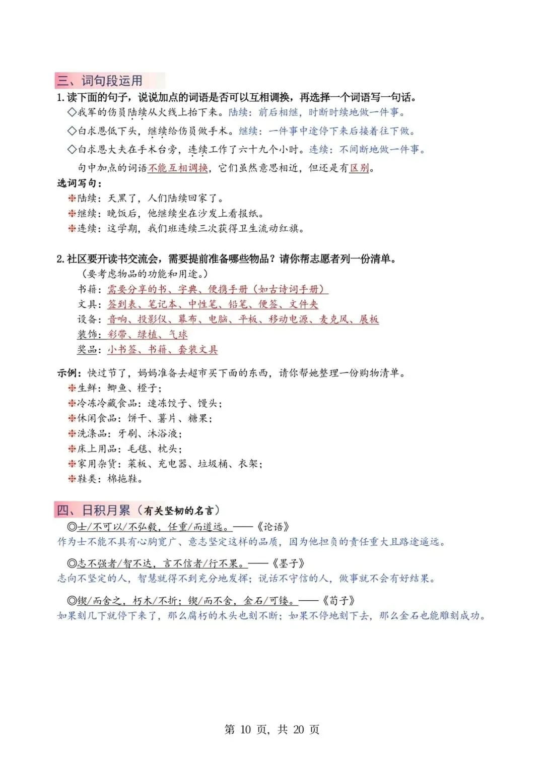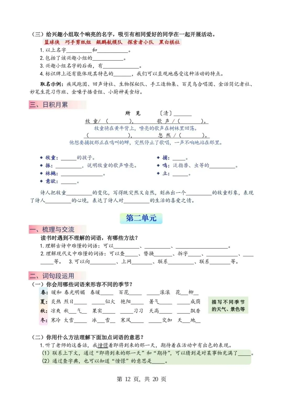新三年级上册语文园地重点总结晨读晚练,电子版可下载打印
