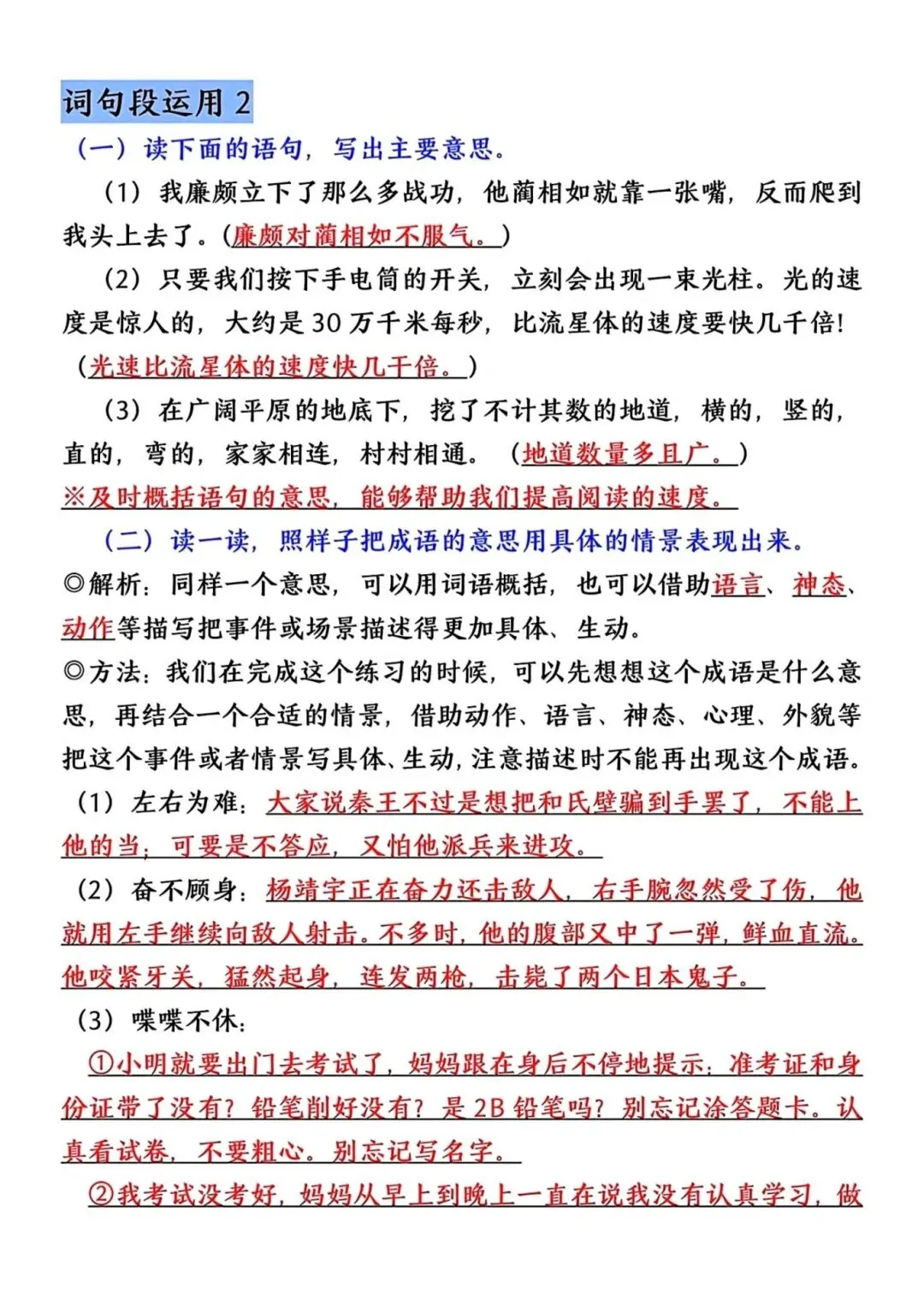 2025年秋人教版五年级语文上册语文园地考点词句段运用,这份词句段运用考点梳理太宝藏,把 “一词多义写句子” 的高频词都整理好了,每个词义都给了范例,还有各种句式训练,练会这些,词句段运用题再也不发愁~爸爸妈妈快给娃安排上,让孩子练一练吧。