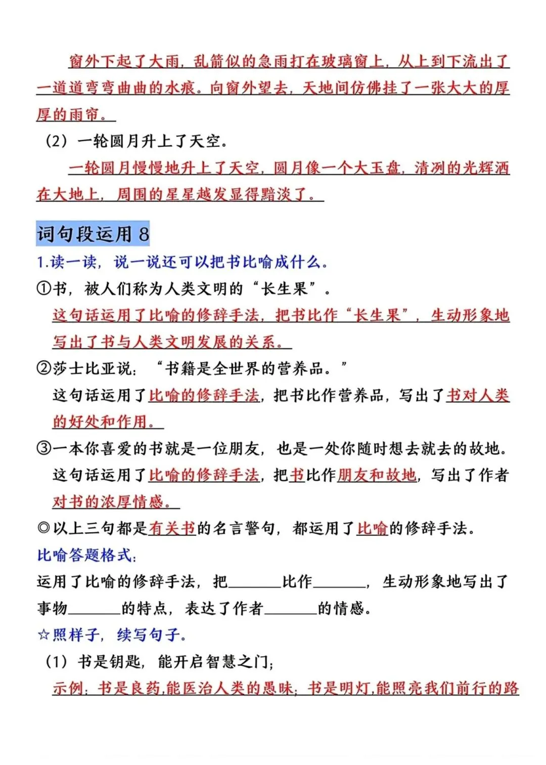 五年级上册语文园地考点词句段运用汇总,电子版可下载打印