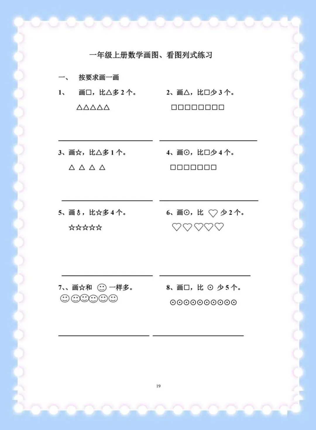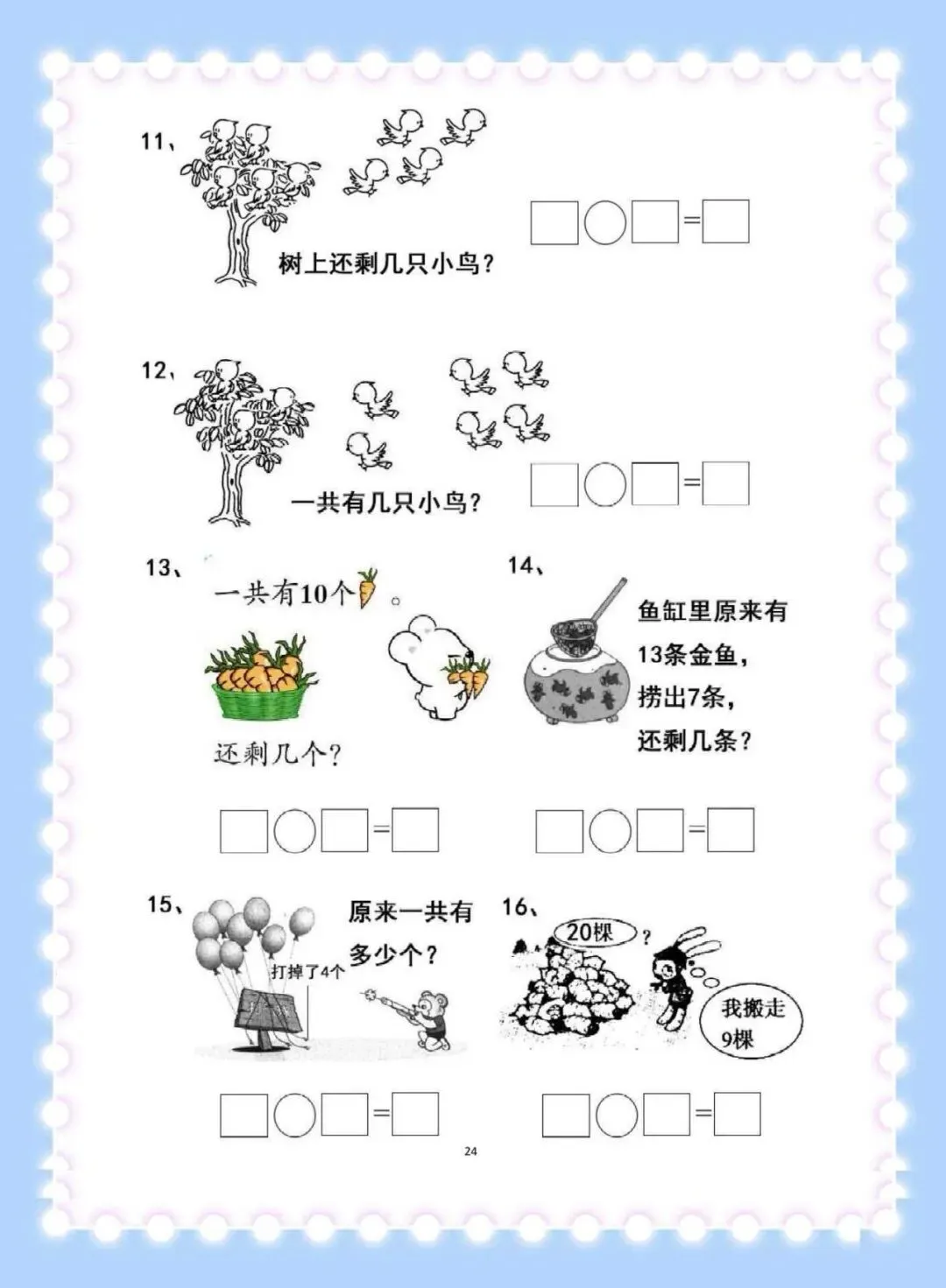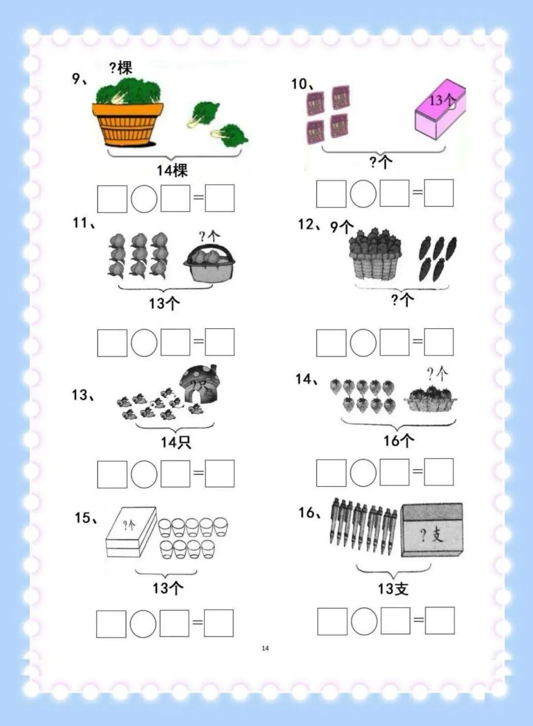 幼小衔接/一年级图列式专项训练,一共44页,涵盖求总和、求部分、连加连减、一图四式……每天一页,循序渐进,打印让孩子练一练吧!