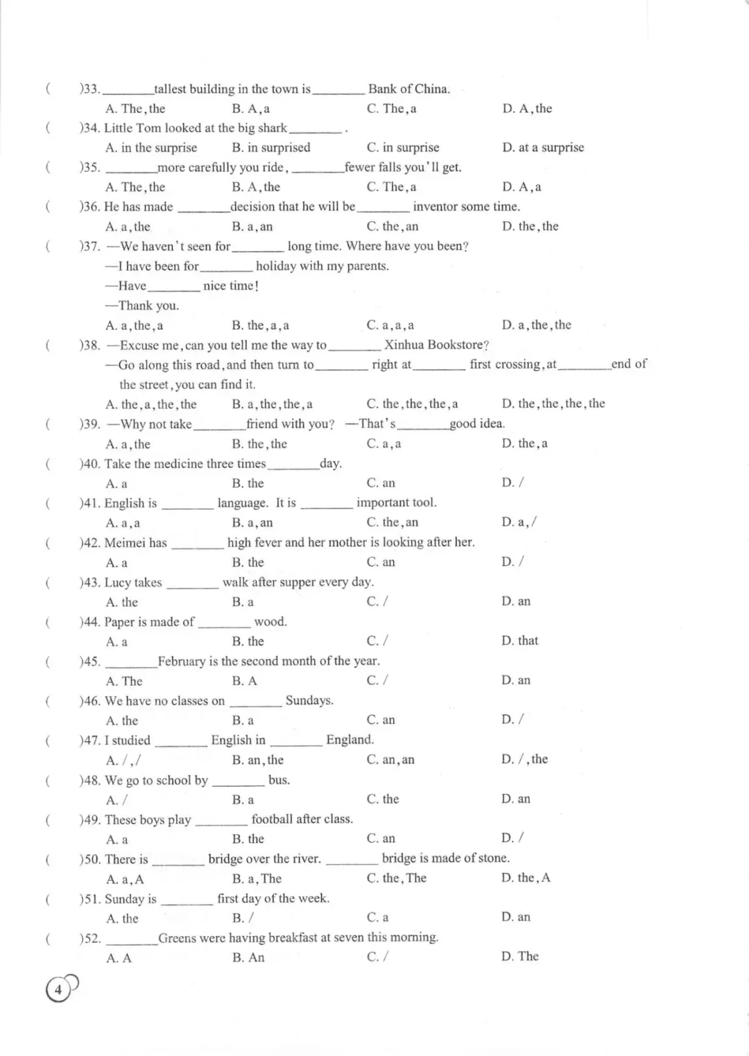 超全初中英语语法专项习题练习,含答案,可免费下载打印