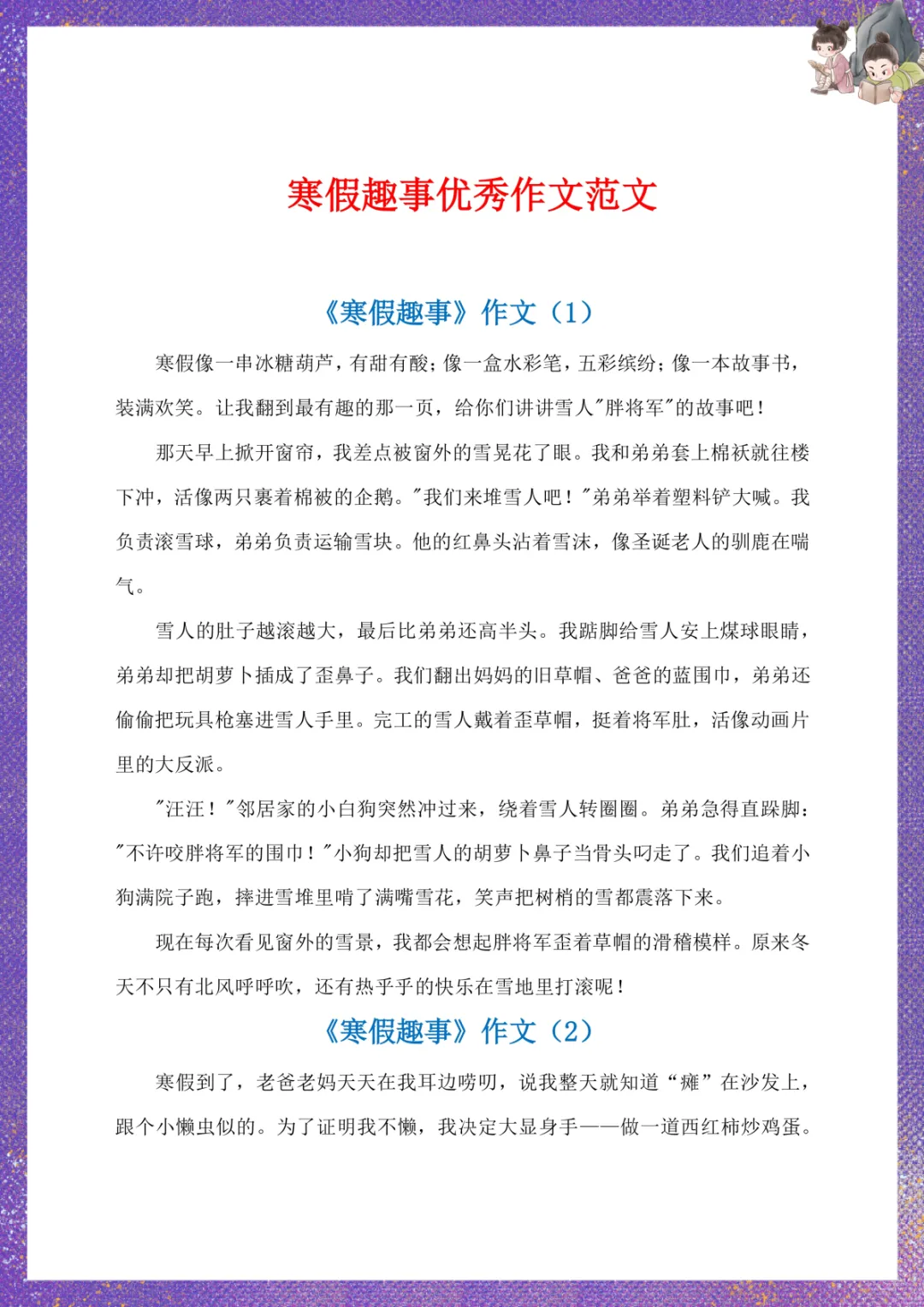 《寒假趣事》优秀作文范文 电子版可下载打印
