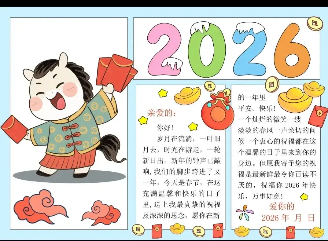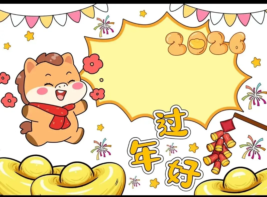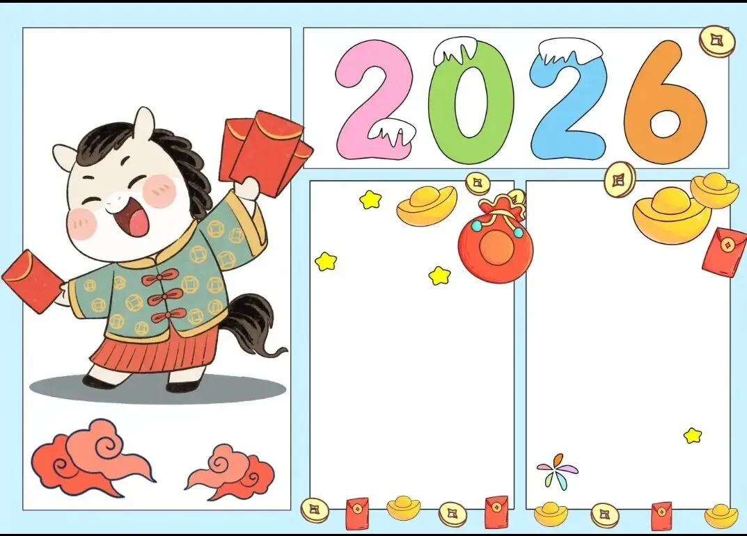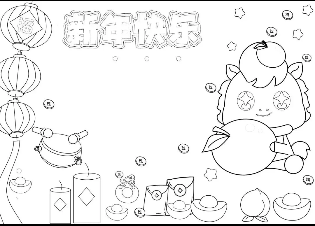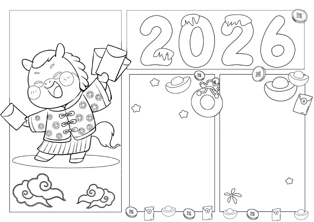 2026马年《新年手抄报》彩稿+线稿 电子版可打印下载