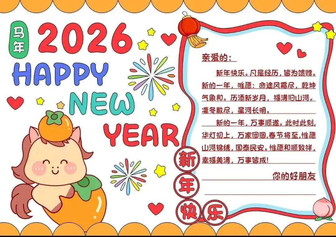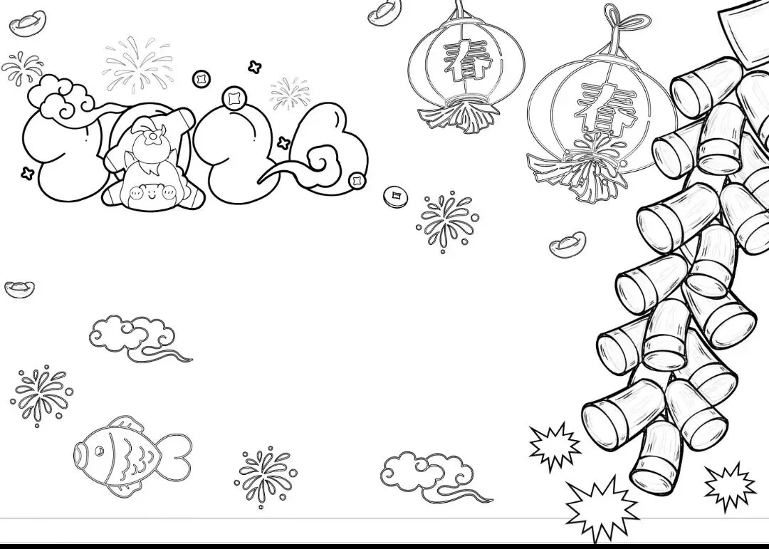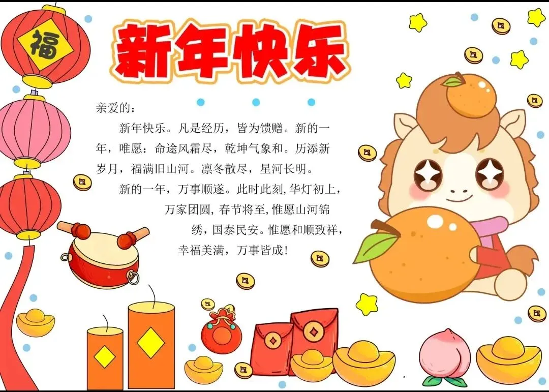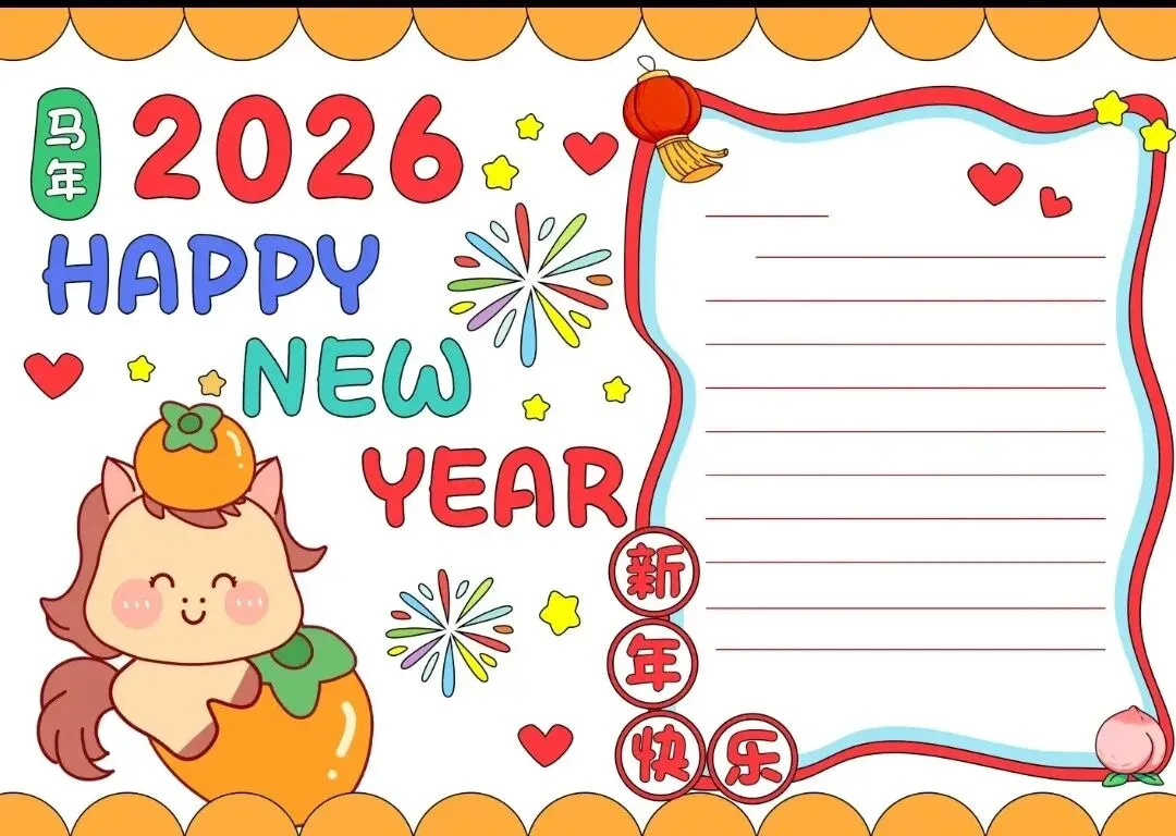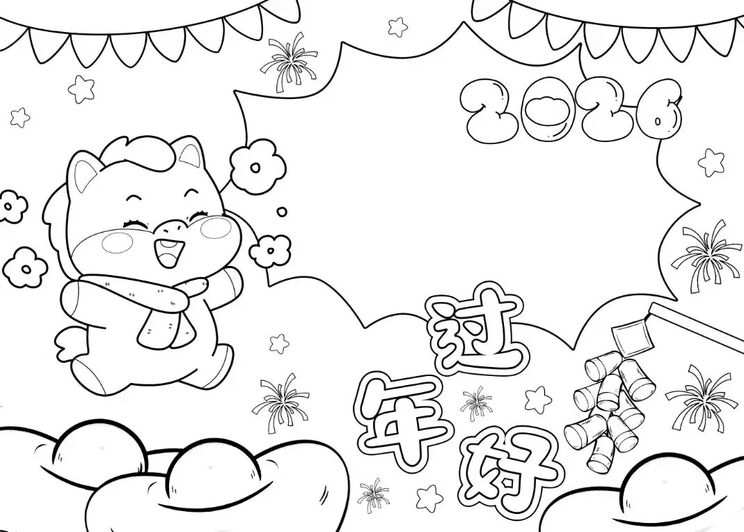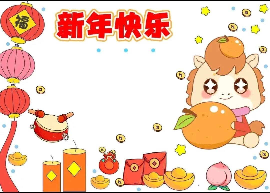 2026马年《新年手抄报》彩稿+线稿 电子版可打印下载