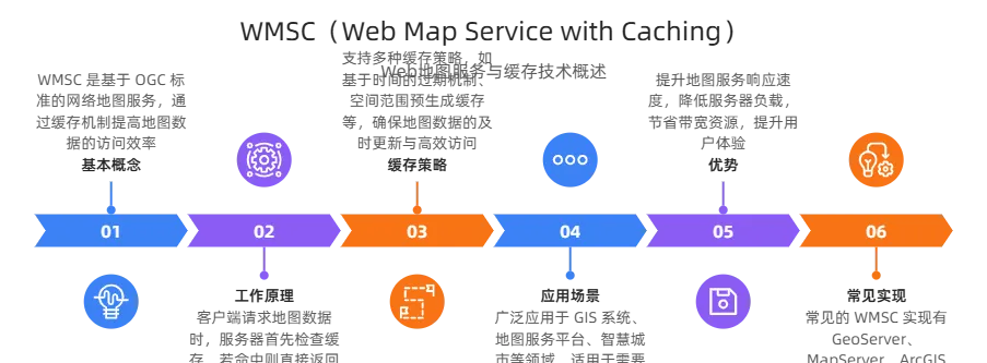 本质:WMS 的扩展,通过缓存机制(如 TileCache)存储频繁请求的地图图片 / 瓦片,提升重复请求响应速度。 -