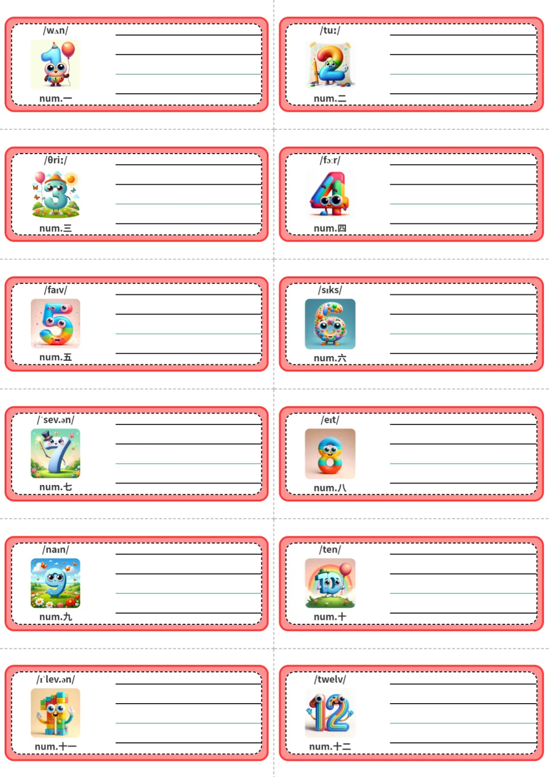 四年级(下)英语 单词条卡(数词)《人教版PEP》