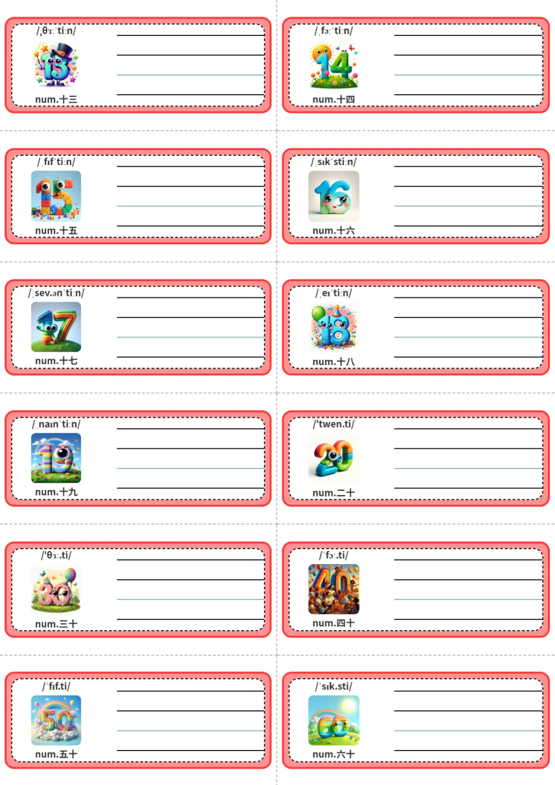 【免费下载】四年级(下)英语 单词条卡(数词)《人教版PEP》,PDF电子版,共2页,可打印