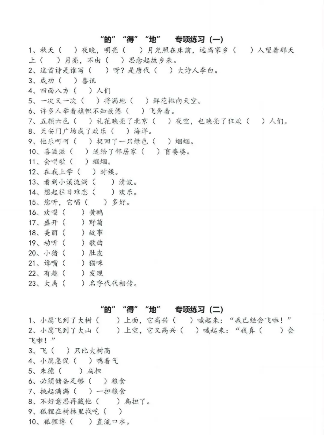 一年级下册语文【的地得】专项练习(电子版)