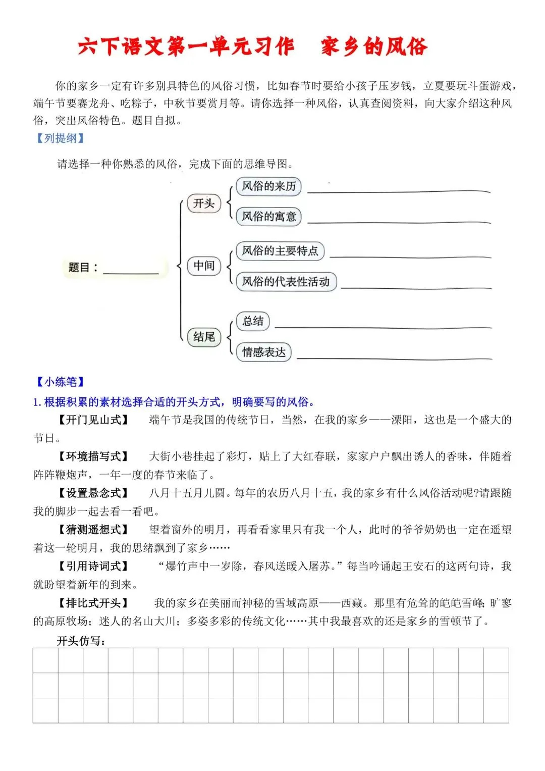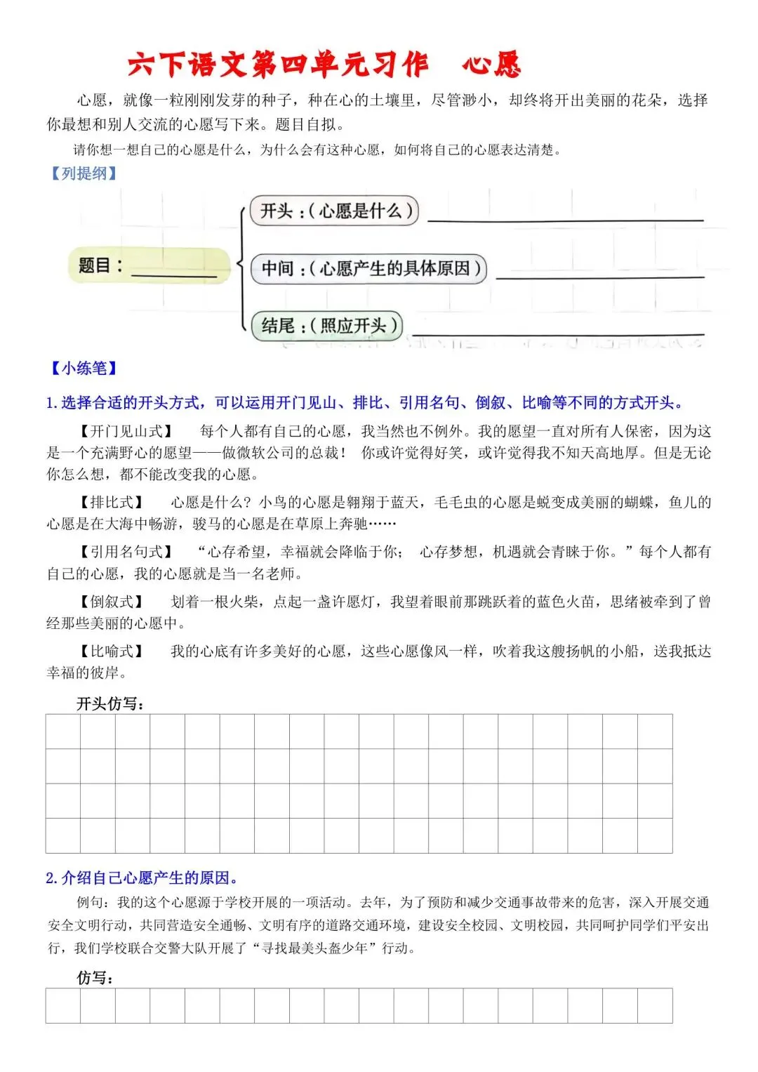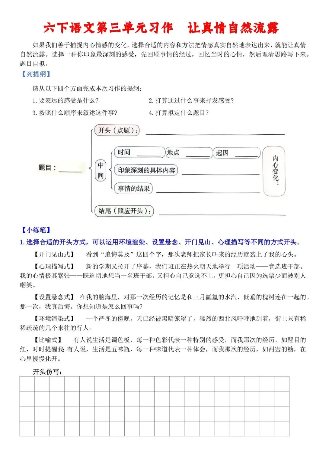 2026年春人教部编版六年级下册语文《1-5单元习作小练笔》,可下载打印