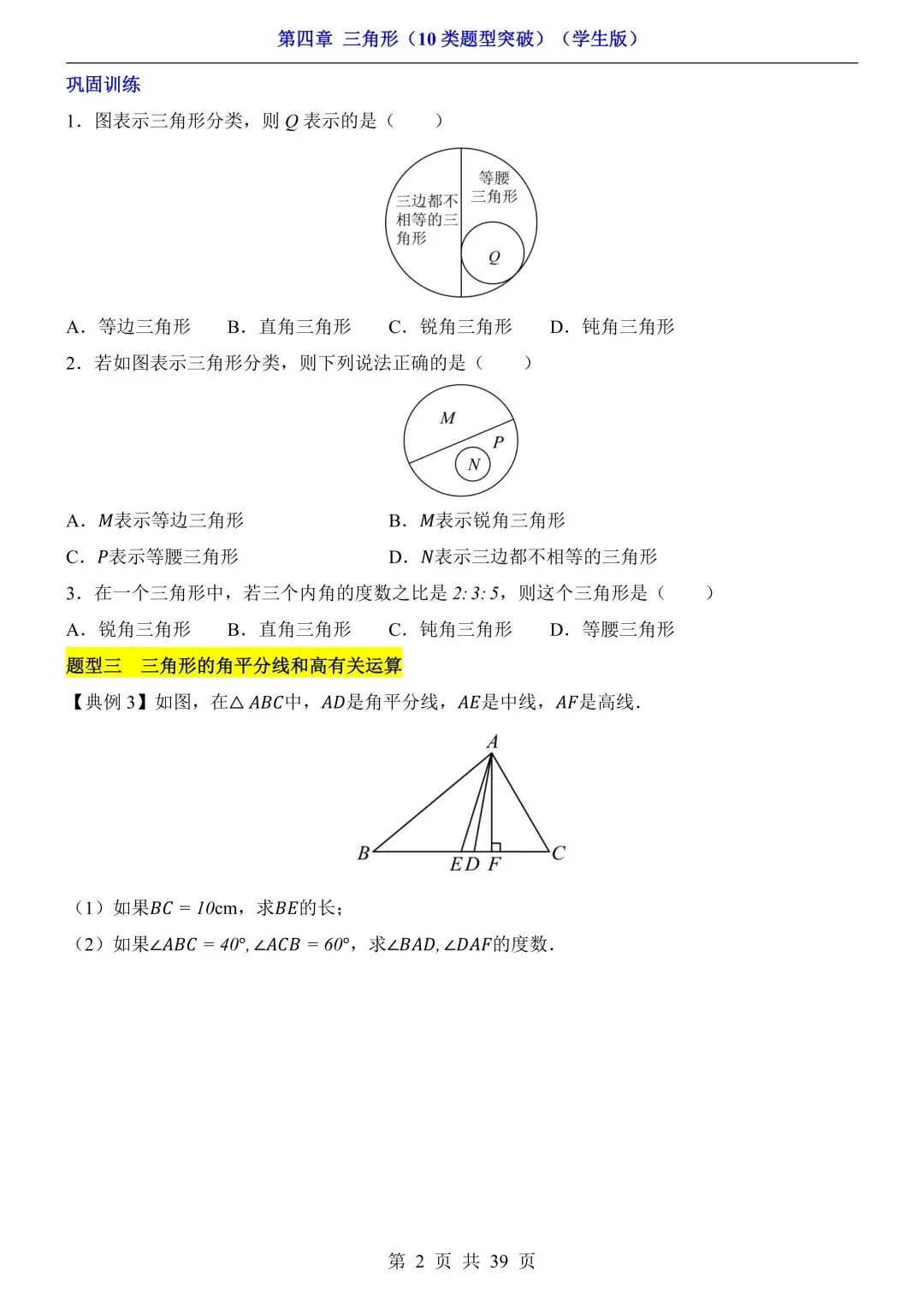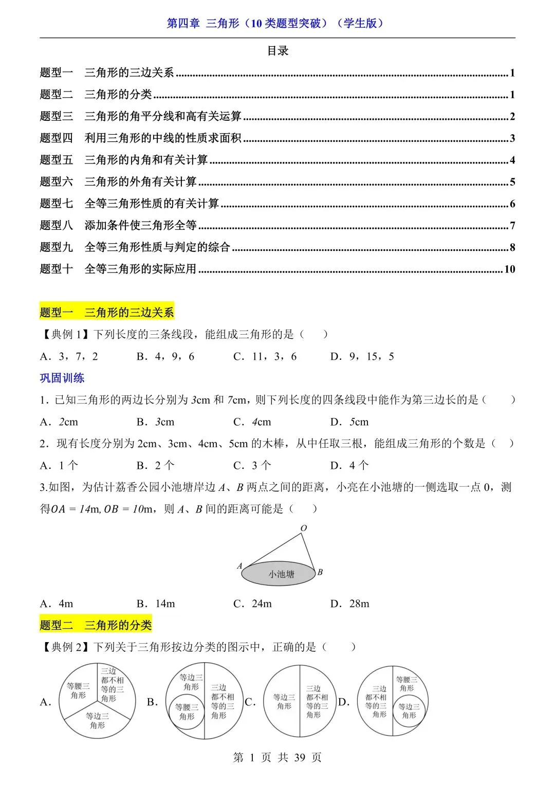 26年春新七年级下册北师大版数学第4章三角形10类题型突破专项练习【附答案解析】丨完整高清可打印(212)