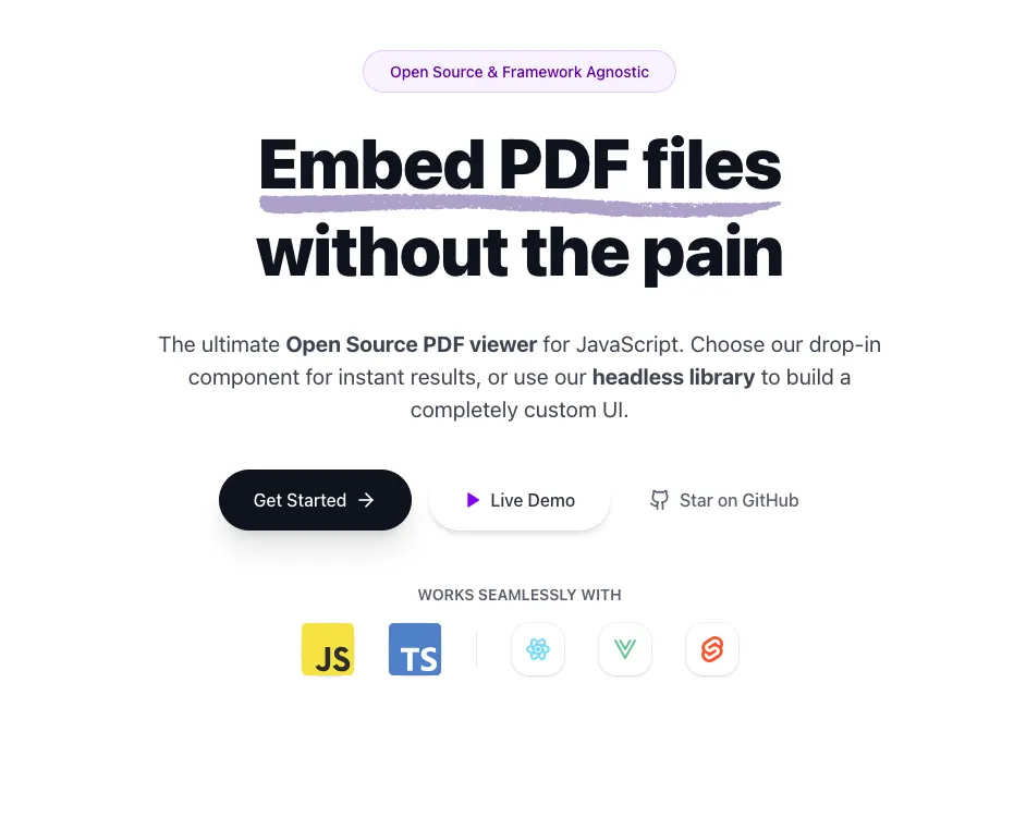 EmbedPDF 是一款开源的 JavaScript PDF 查看器,定位非常明确:帮助开发者在网页中优雅、快速、灵活地集成 PDF 文件浏览功能。