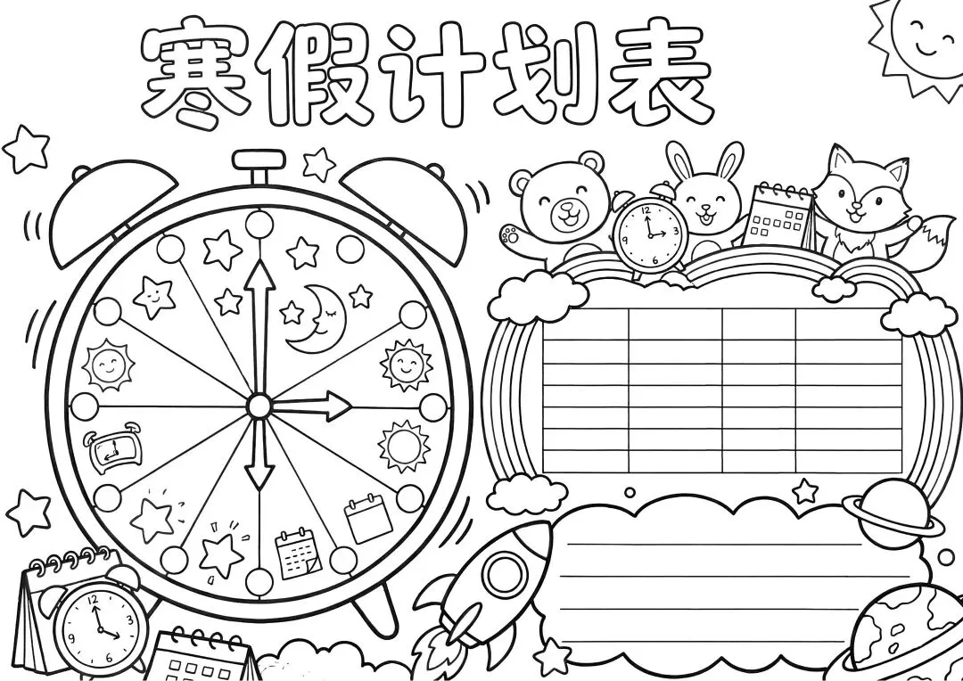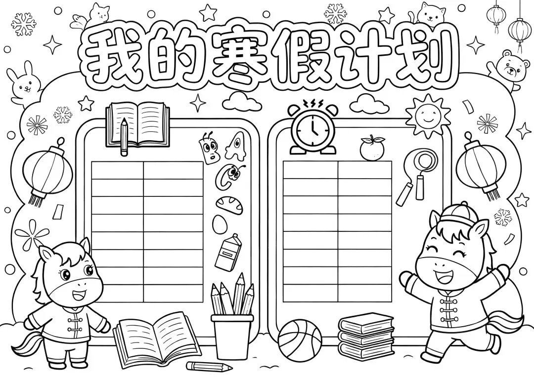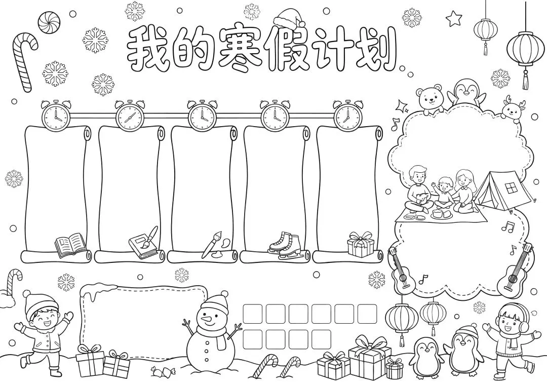 50+《寒假计划手抄报+黑白线稿》电子版,可免费下载打印