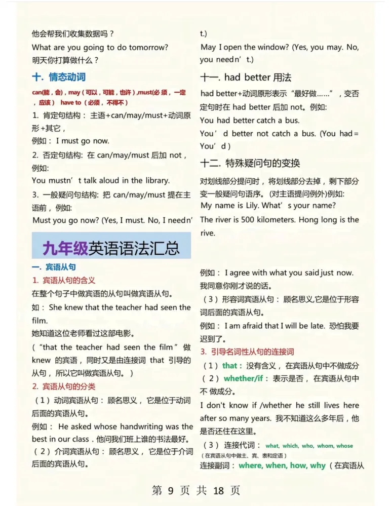 本站文章均为手工撰写未经允许谢绝转载:夜雨聆风 » 九下英语初中语法汇总(完整版)可打印!