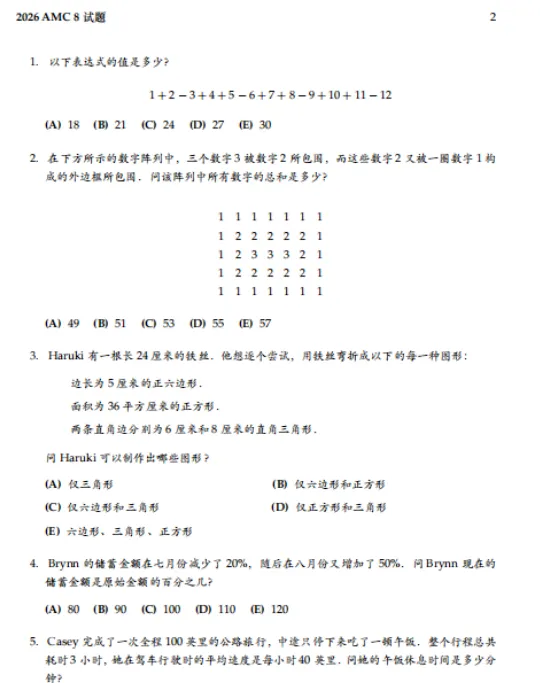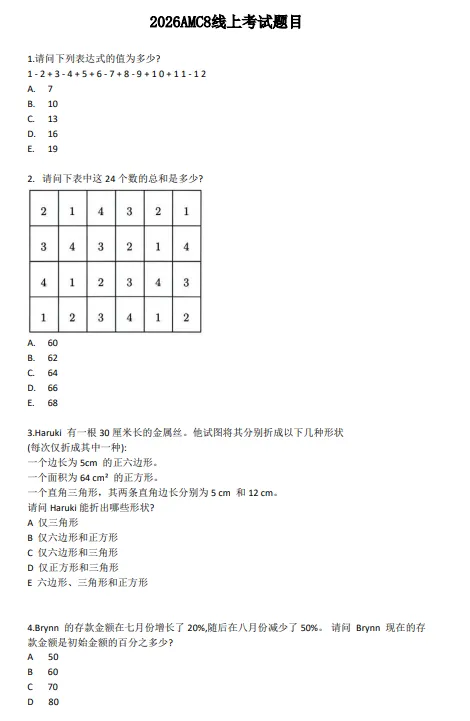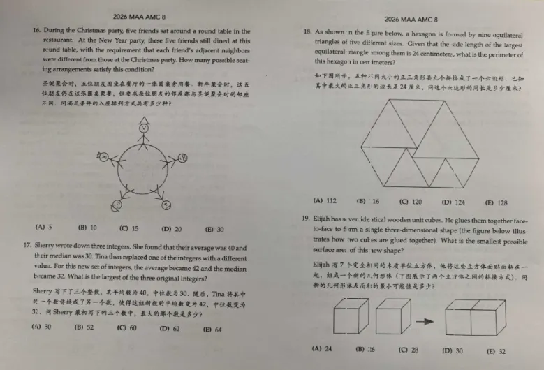 2026年AMC8数学竞赛刚刚落幕,我们整理了今年全部3套AMC8数学竞赛真题,供大家参考学习,助力未来的备考之路!