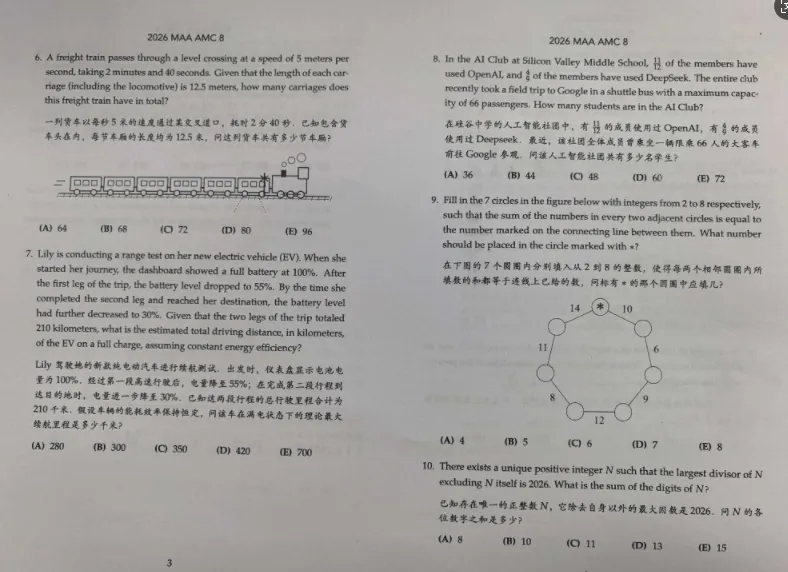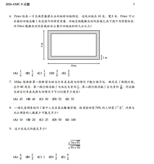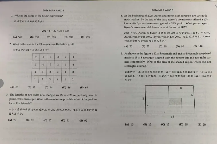 2026年AMC8数学竞赛真题免费下载(中英双语+逐题解析)