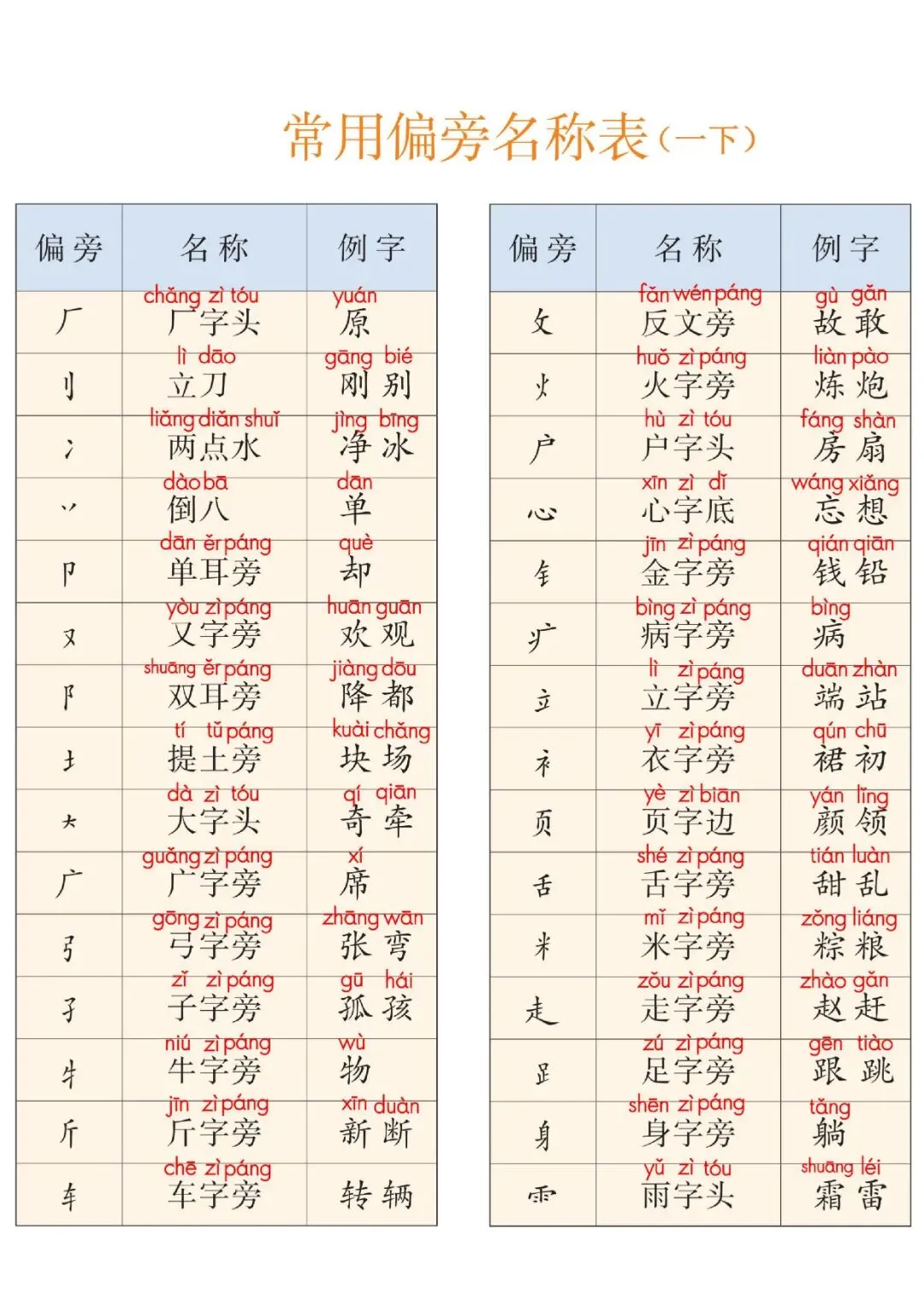 26春一年级下册语文课后三表注音版《识字表+写字表+常用偏旁名称表),免费领取,可打印.