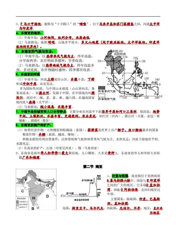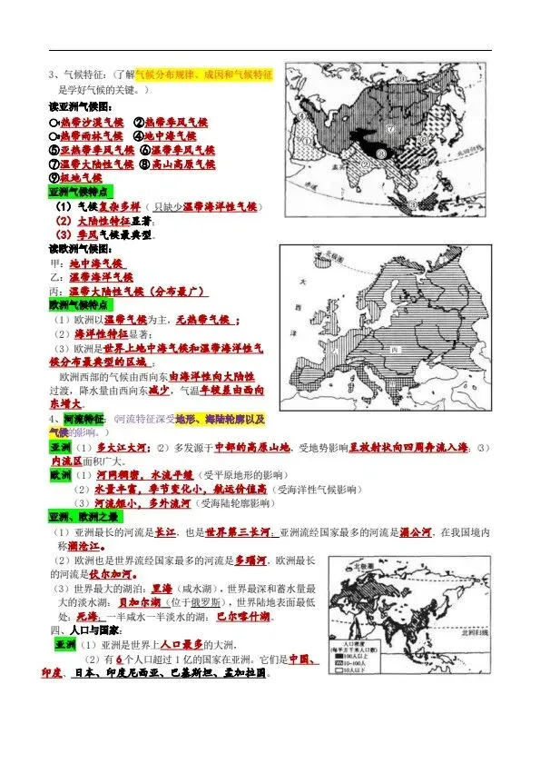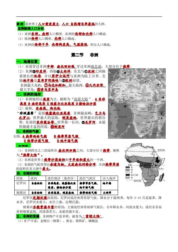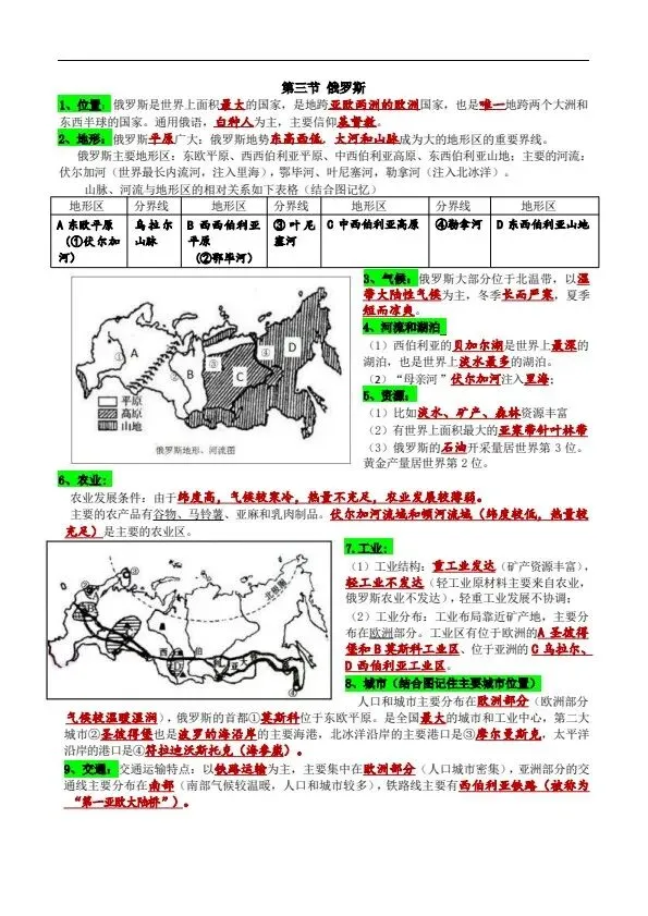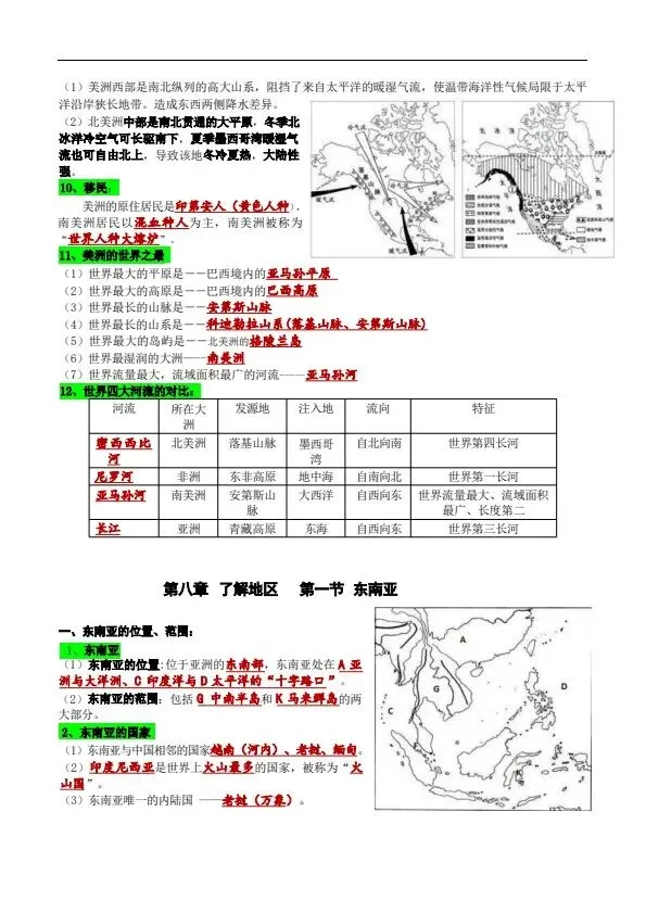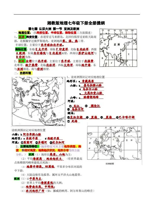 新湘教版地理七年级下册全册知识提纲(完整电子版可打印)