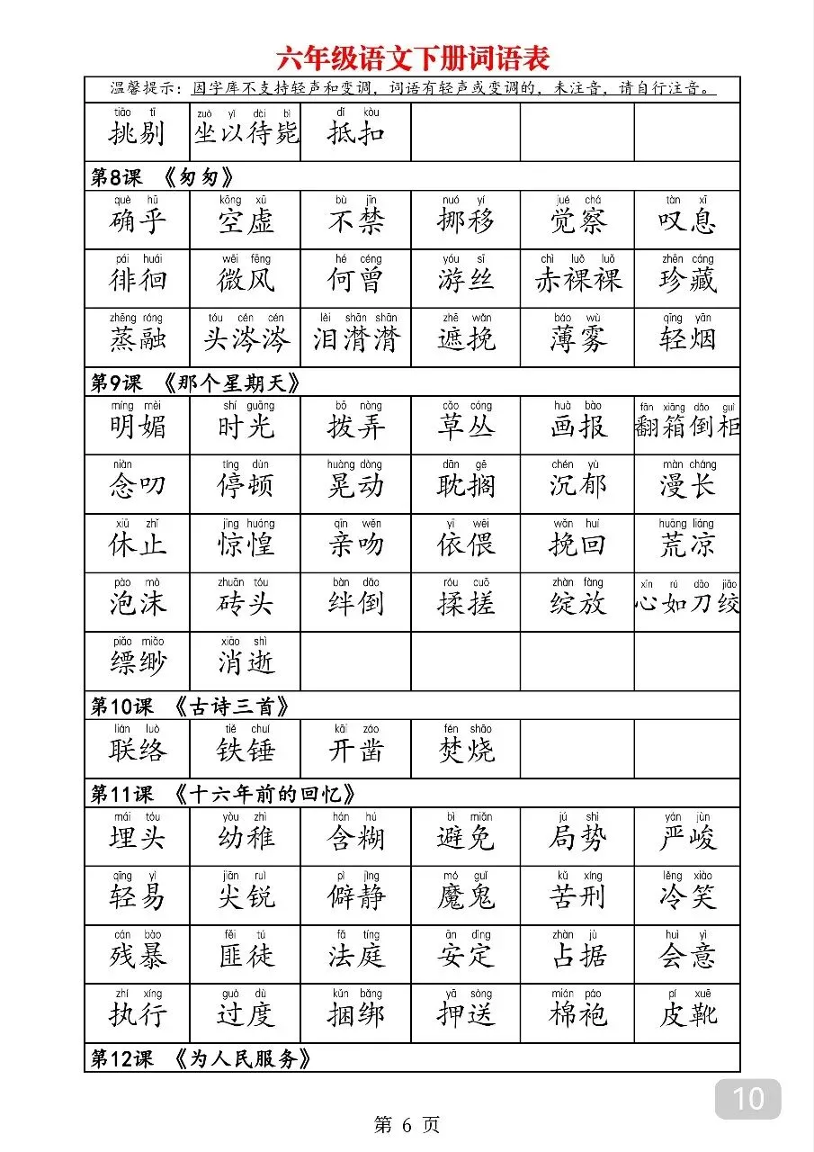 六年级(下)语文 内容每日背诵.pdf 篇幅有限,无法全部展示。 请按照文末方式领取,无门槛永久免费,欢迎转发,帮助更多有需要的人~ 温馨提示: 文末有完整电子版领取方式! 领取完整电子版: ①:点一点右下角的“👍”和“❤️” ②:在公众号对话框中回复“资料1049”