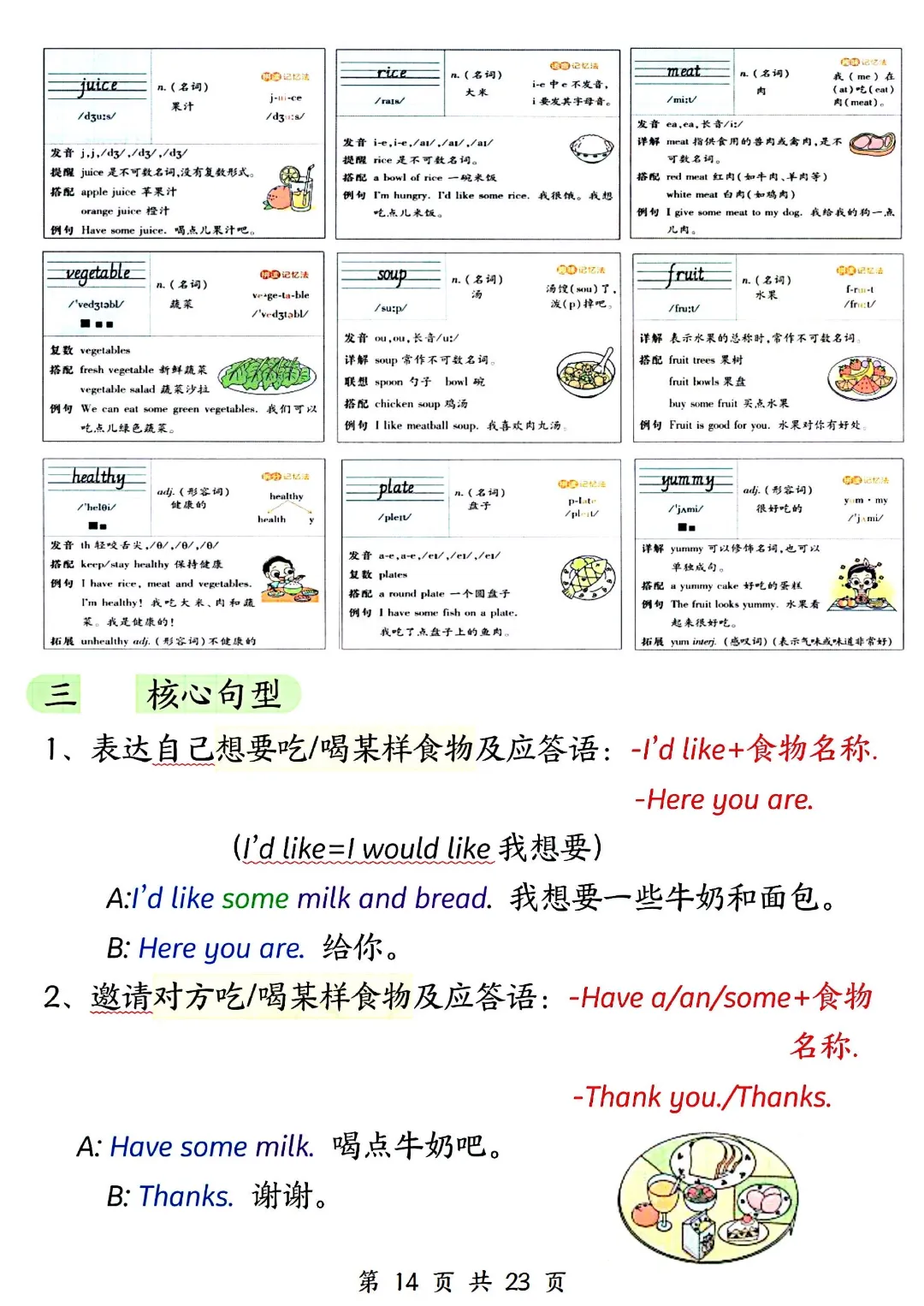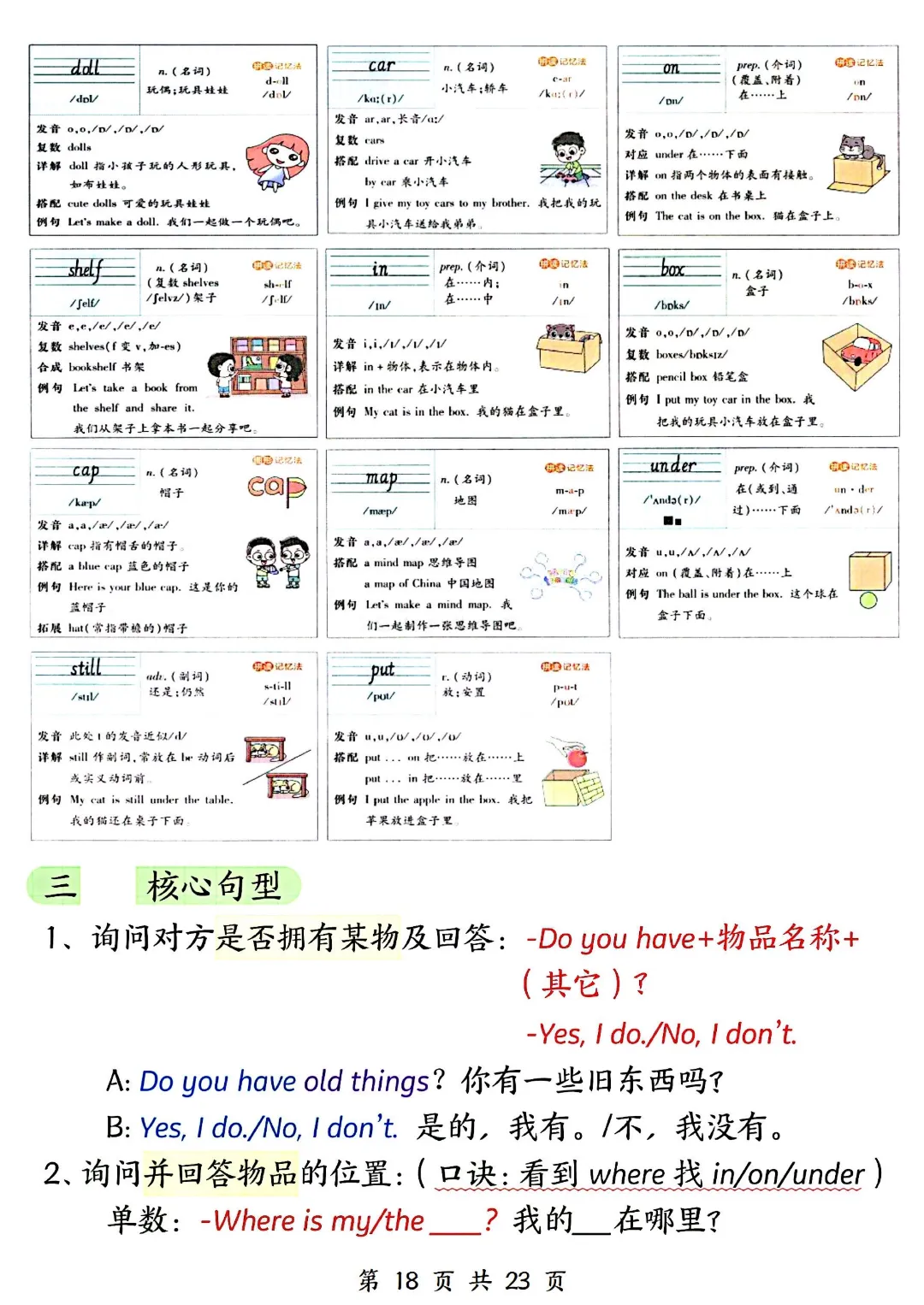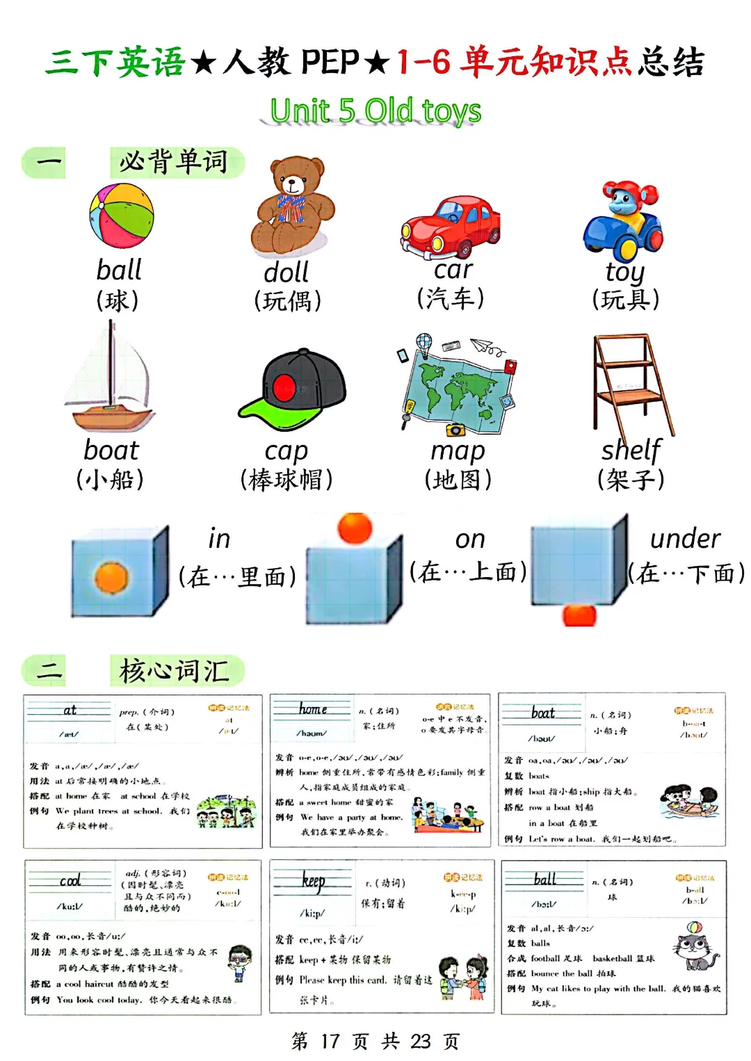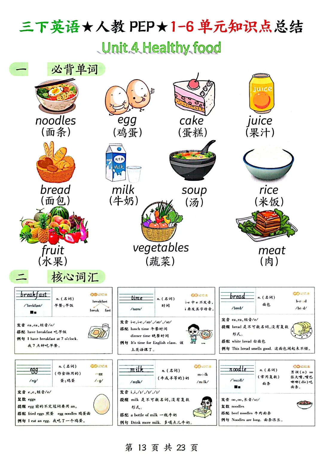 26春三年级下英语人教版PEP版《1-6 单元知识点总结》高清完整电子版可打印