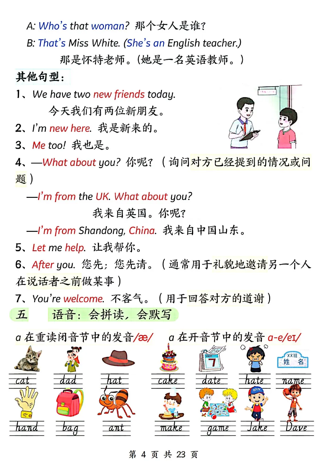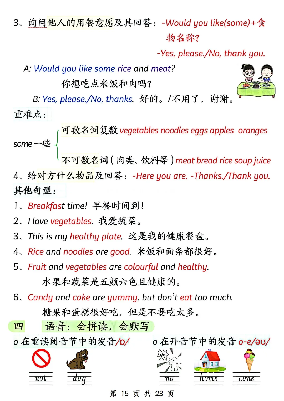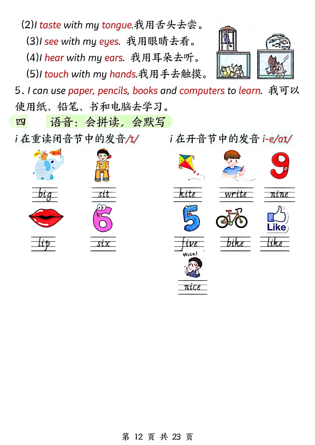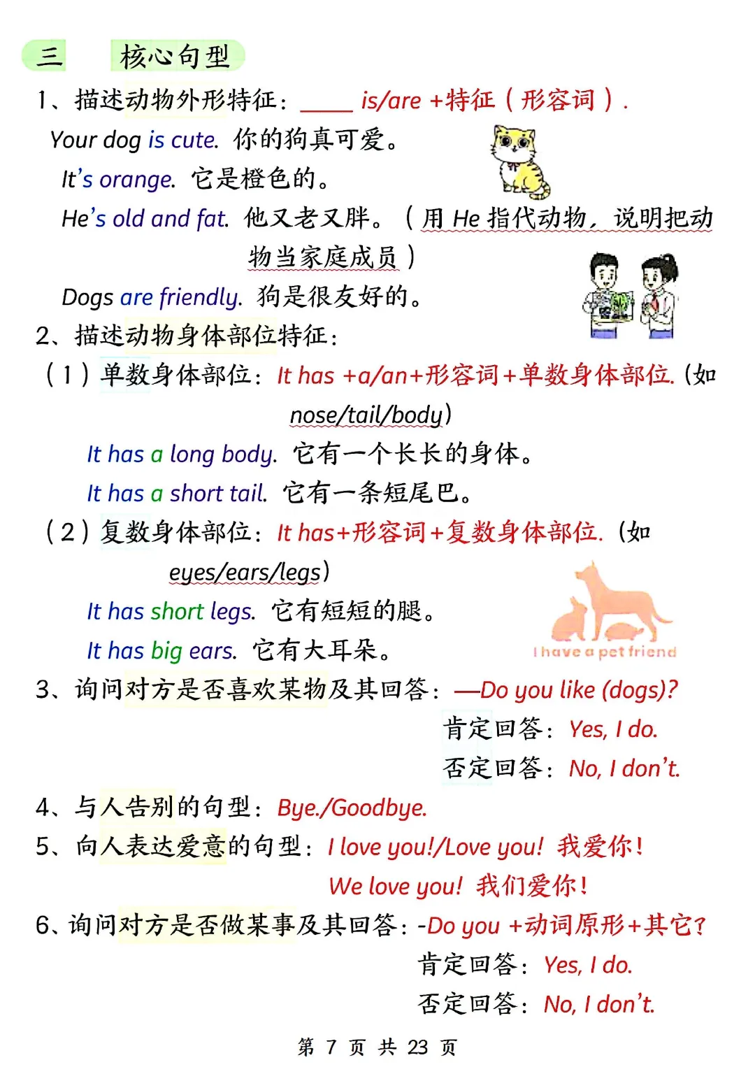 26春三年级下英语人教版PEP版《1-6 单元知识点总结》高清完整电子版可打印