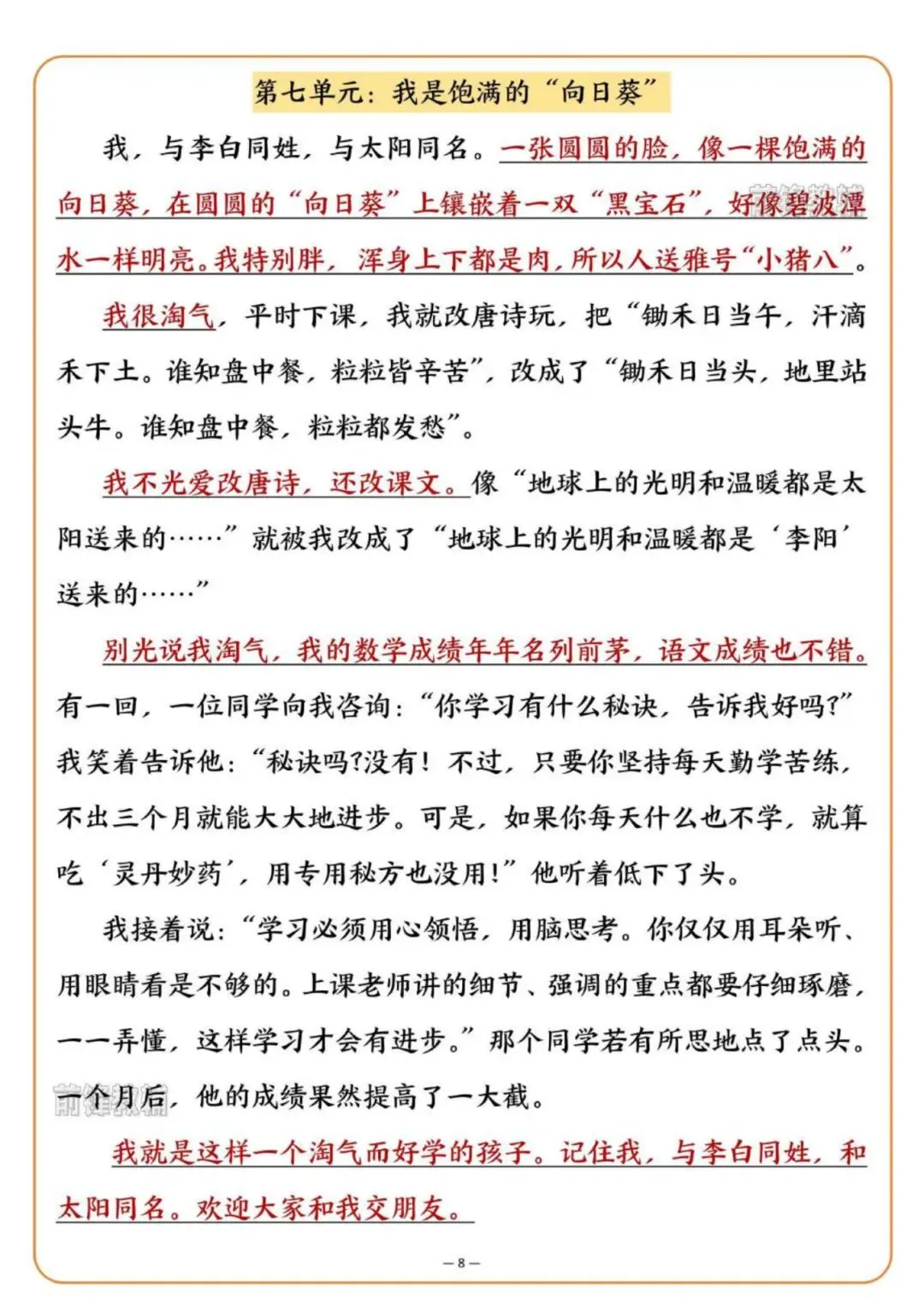 26春人教部编版【四年级语文下册】1-8单元写作范文合集|完整可打印