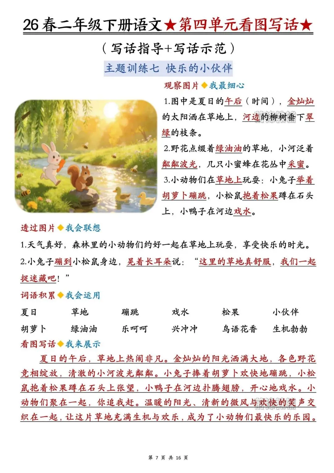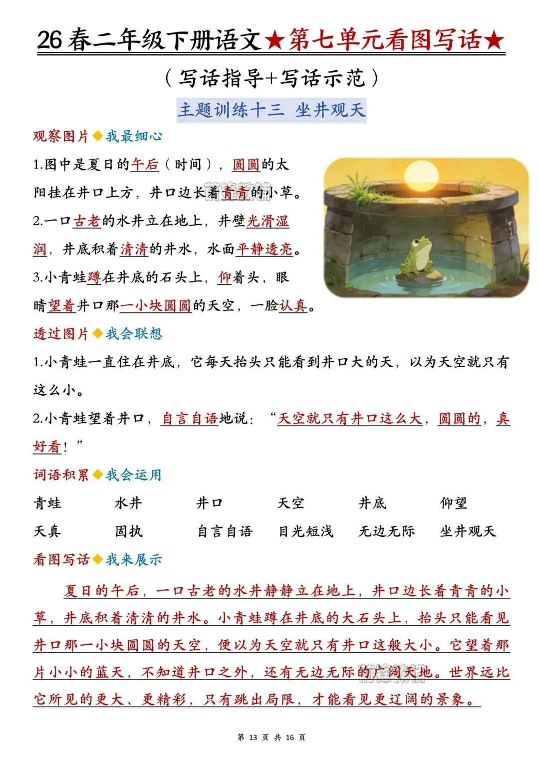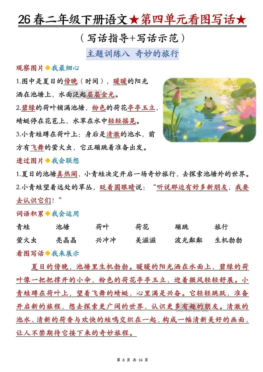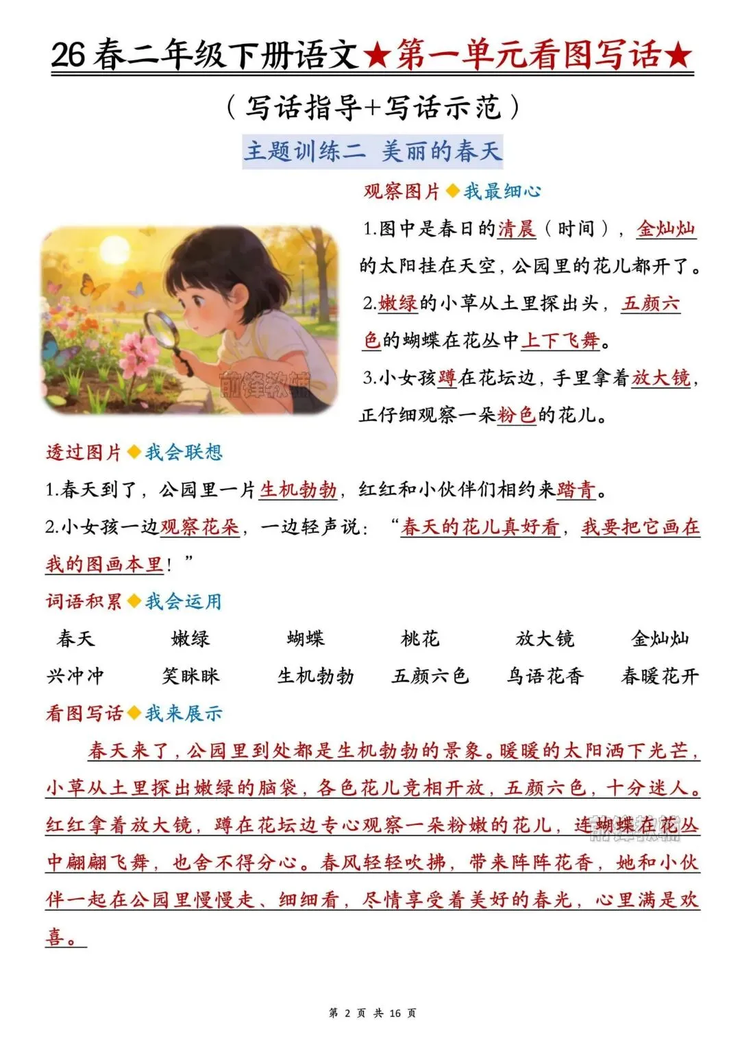 26春人教部编版【二年级语文下册】1-8单元看图写话写作指导+范文|完整可打印