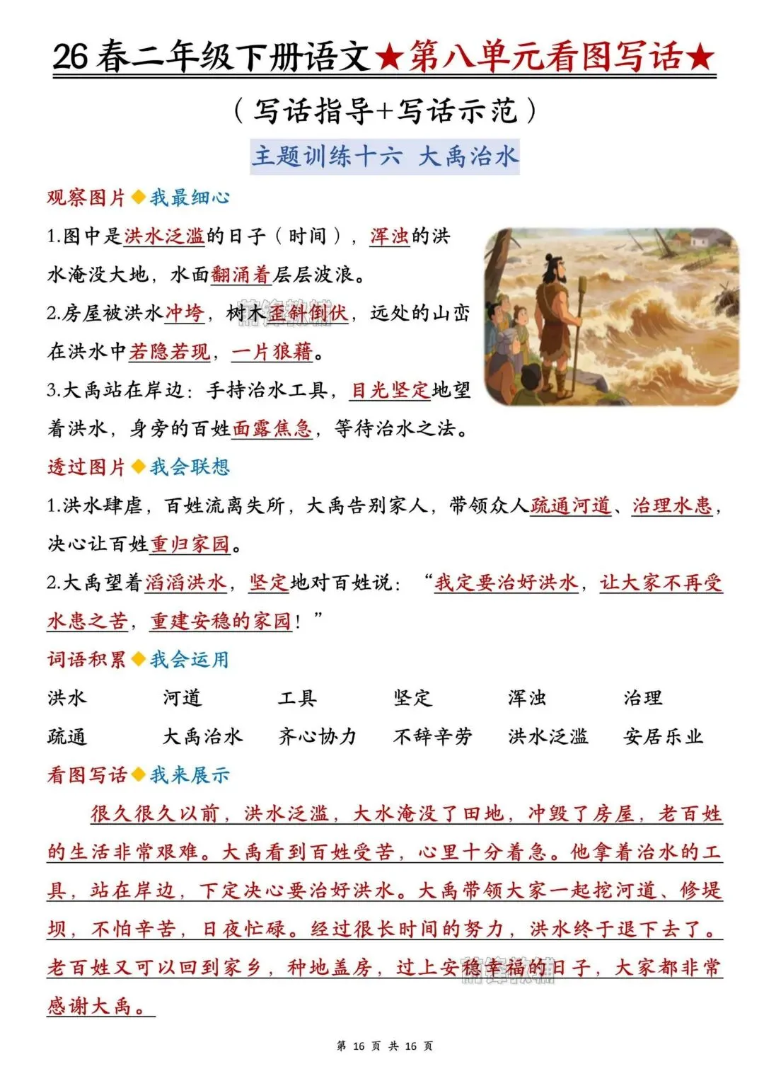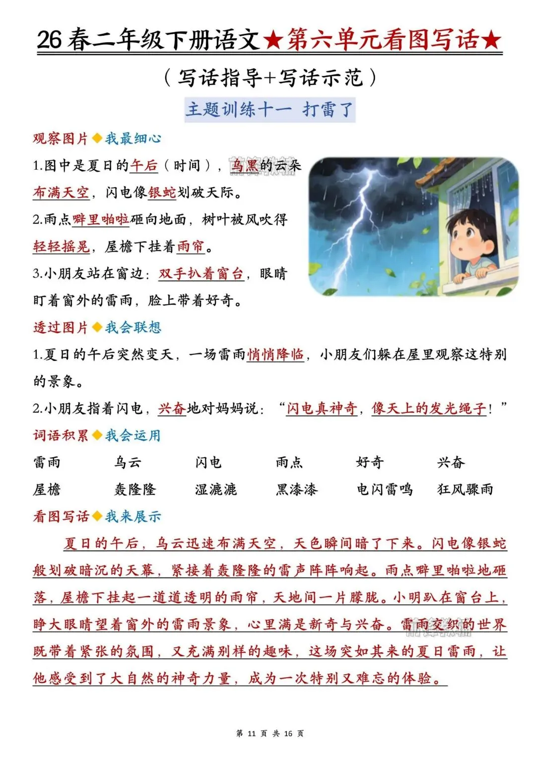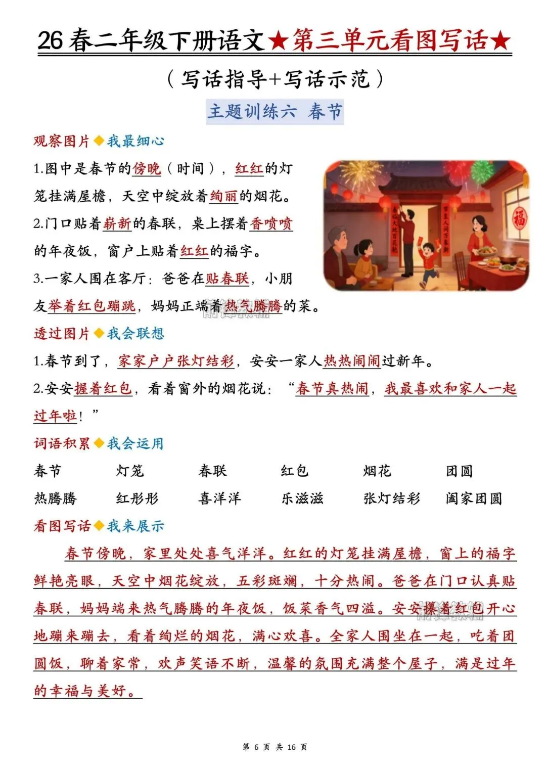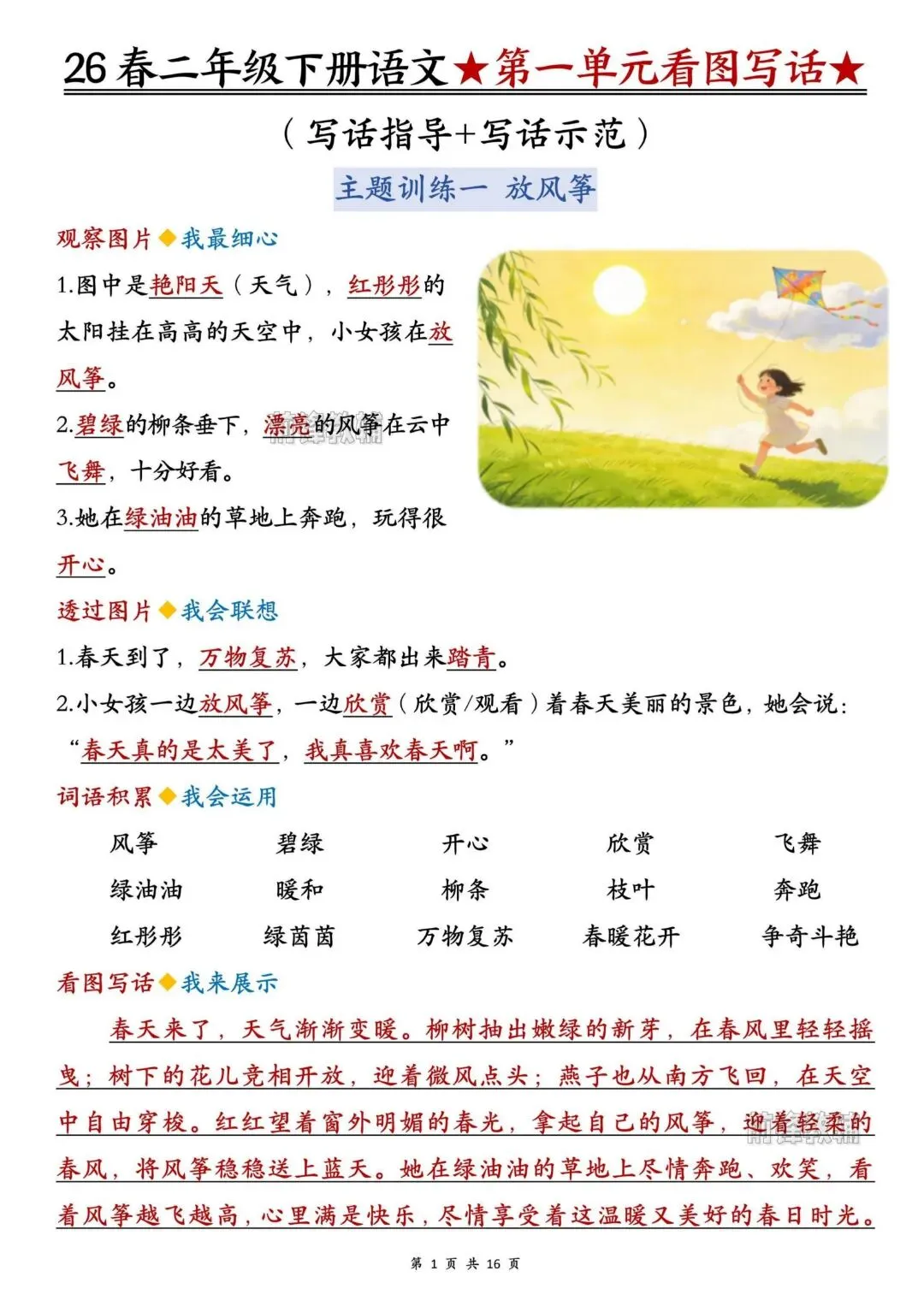 26春人教部编版【二年级语文下册】1-8单元看图写话写作指导+范文|完整可打印