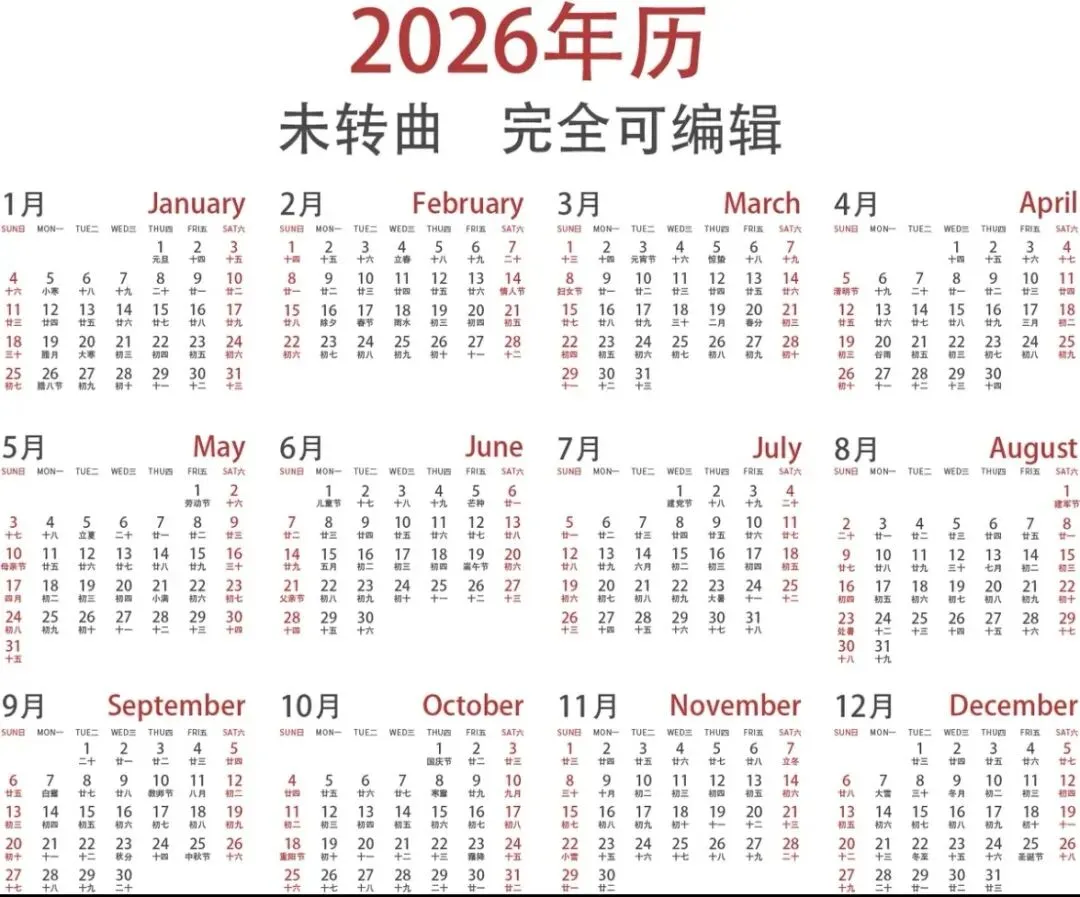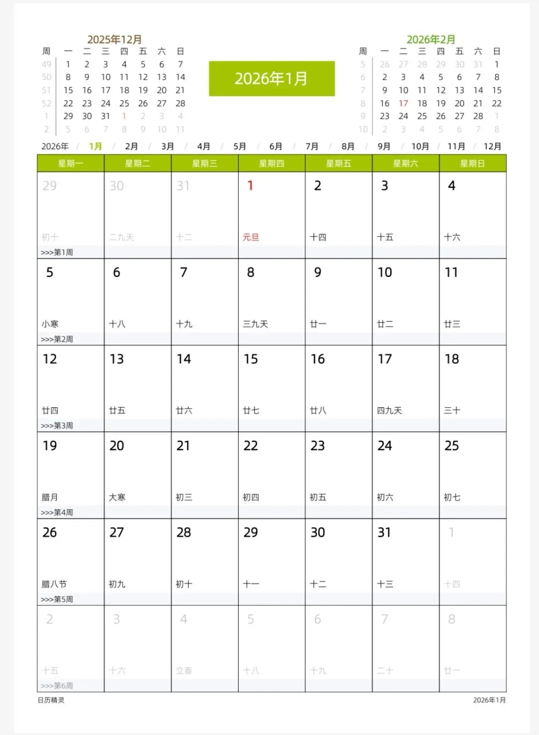 《2026年日历》高清电子版模板日历月历年历工作学习目标计划(可免费下载,可打印)