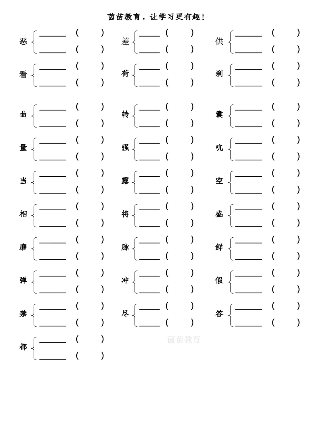 四年级下册多音字组词专项练习pdf下载,可打印!