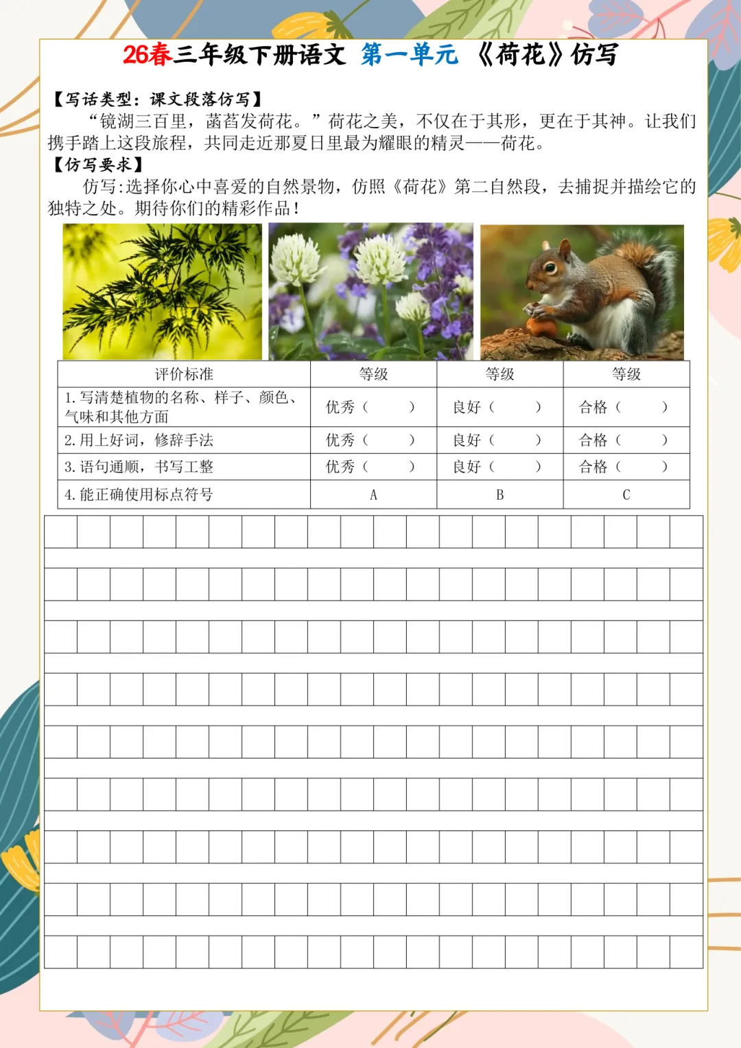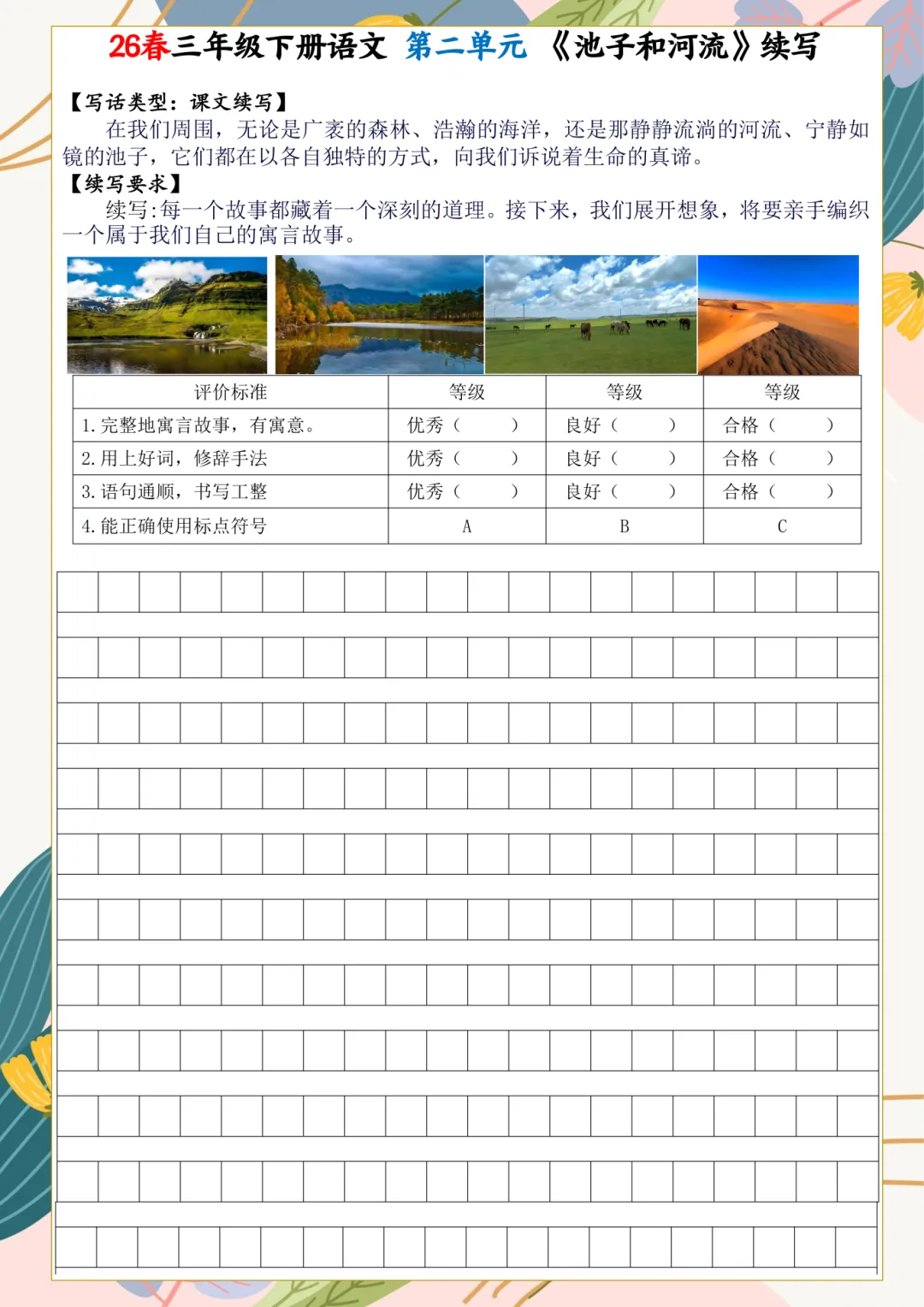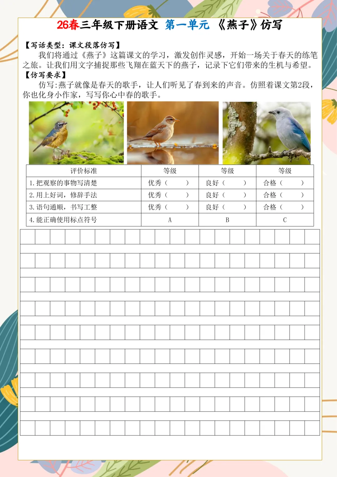 2026年春三年级下册语文课内小练笔,电子版可下载,需要的家长打印出来,给孩子练一练吧!