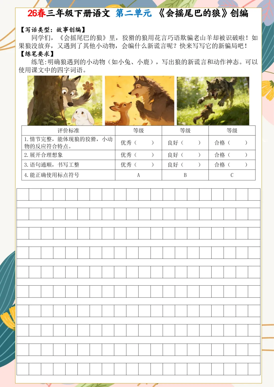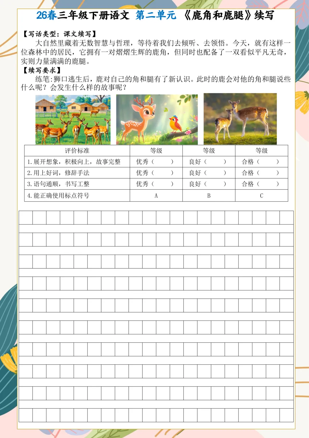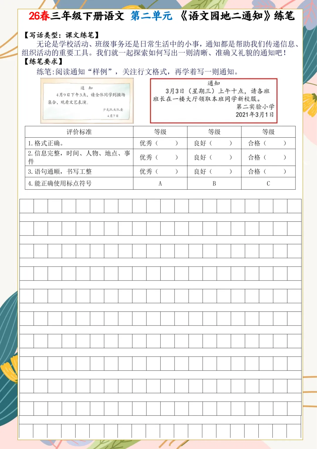 2026年春三年级下册语文课内小练笔,电子版可下载,需要的家长打印出来,给孩子练一练吧!