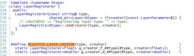 与Solver的创建方式很像,Layer的创建使用的也是工厂模式,这里简单说明下几个宏函数: