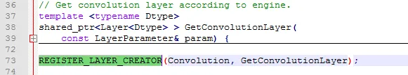 我们来看看大多数层创建的函数的生成宏REGISTER_LAYER_CLASS,可以看到宏函数比较简单的,将类型作为函数名称的一部分,这样就可以产生出一个创建函数,并将创建函数放入LayerRegistry。