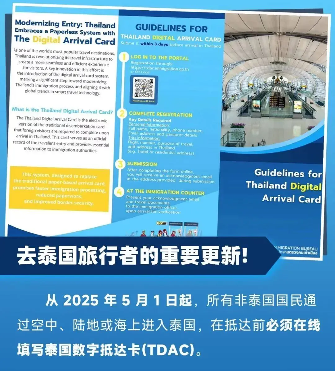 请记得提前填写申报泰国入境卡TDAC,避免现场人流较多,且网络卡顿,提前填写!抵达泰国的时候丝滑入境!