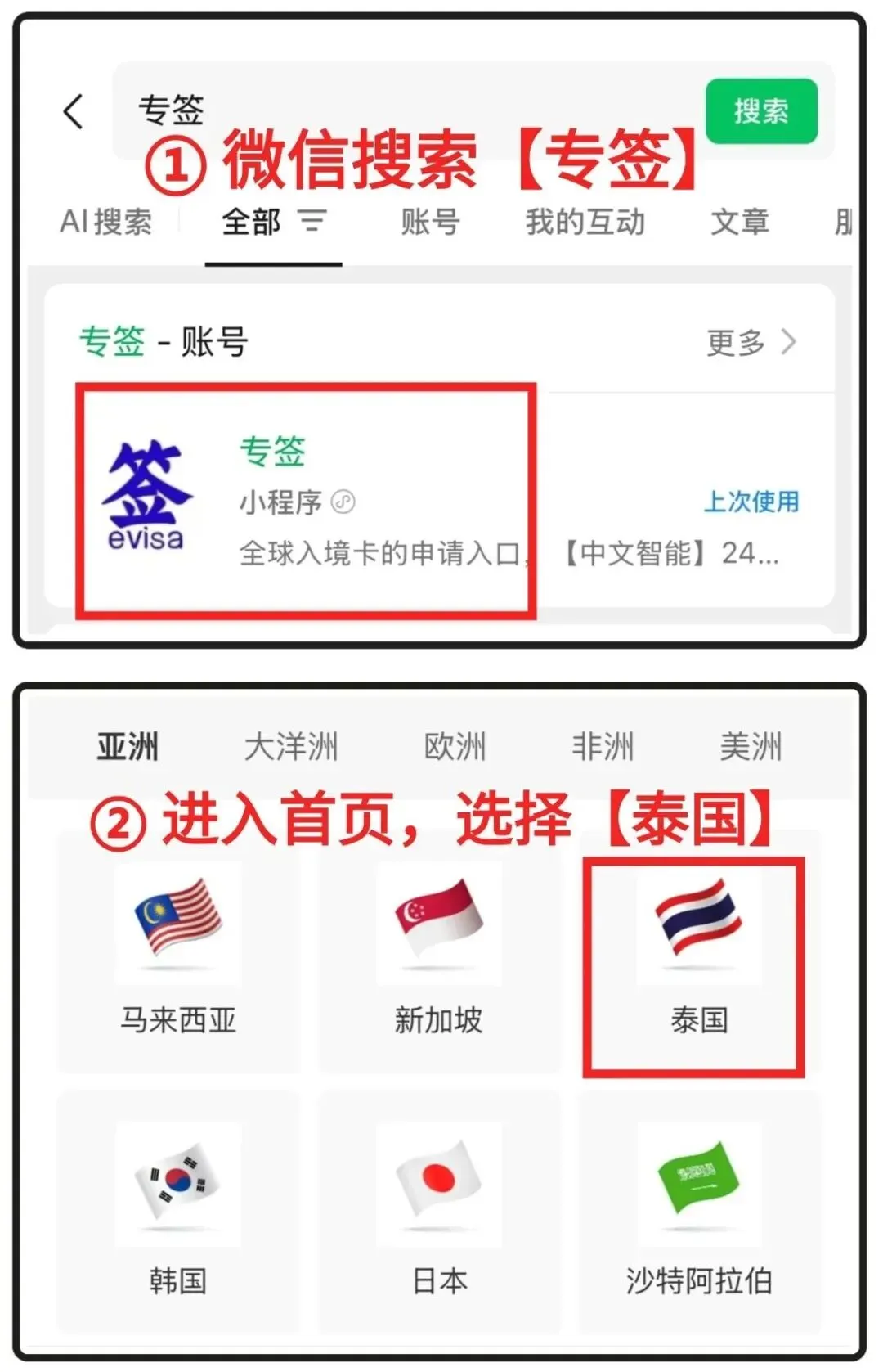 第一步:【专签】小程序,进入首页点击直达
