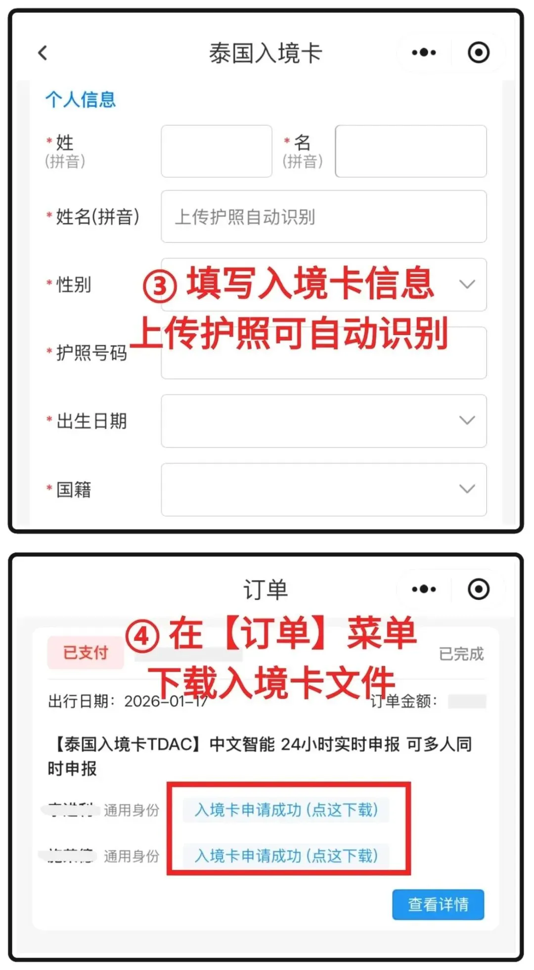 泰国入境卡填写步骤: